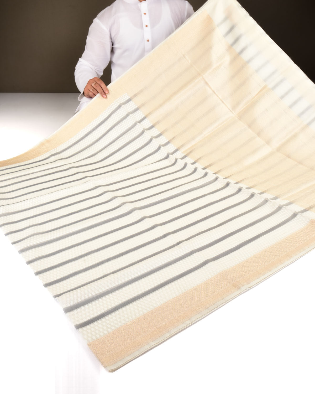 Save 36%Stone Gray Gold Zari Cutwork Brocade Handwoven Kora Silk Banarasi Saree with Satin Meenekari Border Pallu-HolyWeavesStone Gray Gold Zari Cutwork Brocade Handwoven Kora Silk Banarasi Saree with Satin Meenekari Border Pallu-HolyWeaves