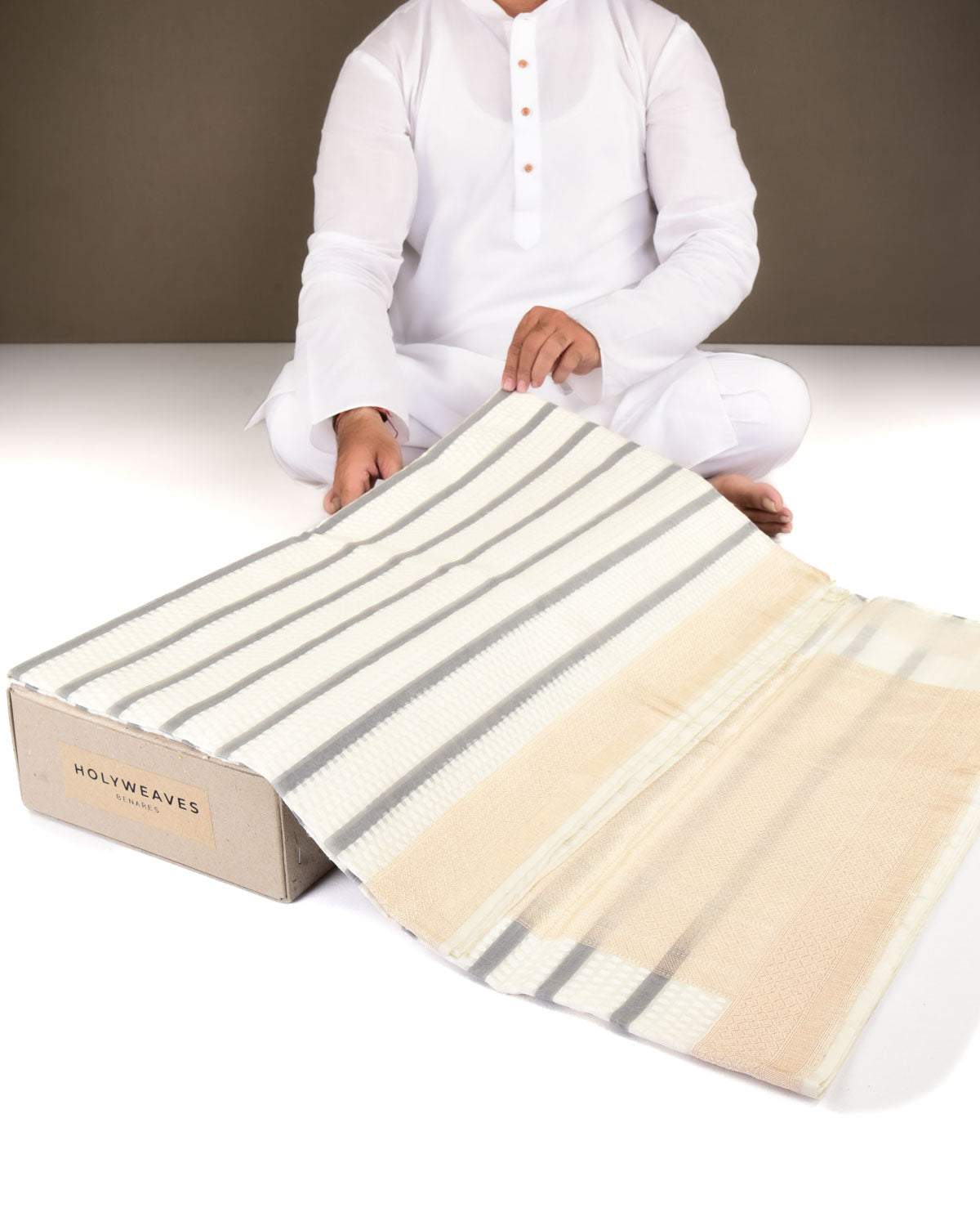 Save 36%Beige Peach Gold Zari Cutwork Brocade Handwoven Kora Silk Banarasi Saree with Satin Meenekari Border Pallu-HolyWeavesBeige Peach Gold Zari Cutwork Brocade Handwoven Kora Silk Banarasi Saree with Satin Meenekari Border Pallu-HolyWeaves