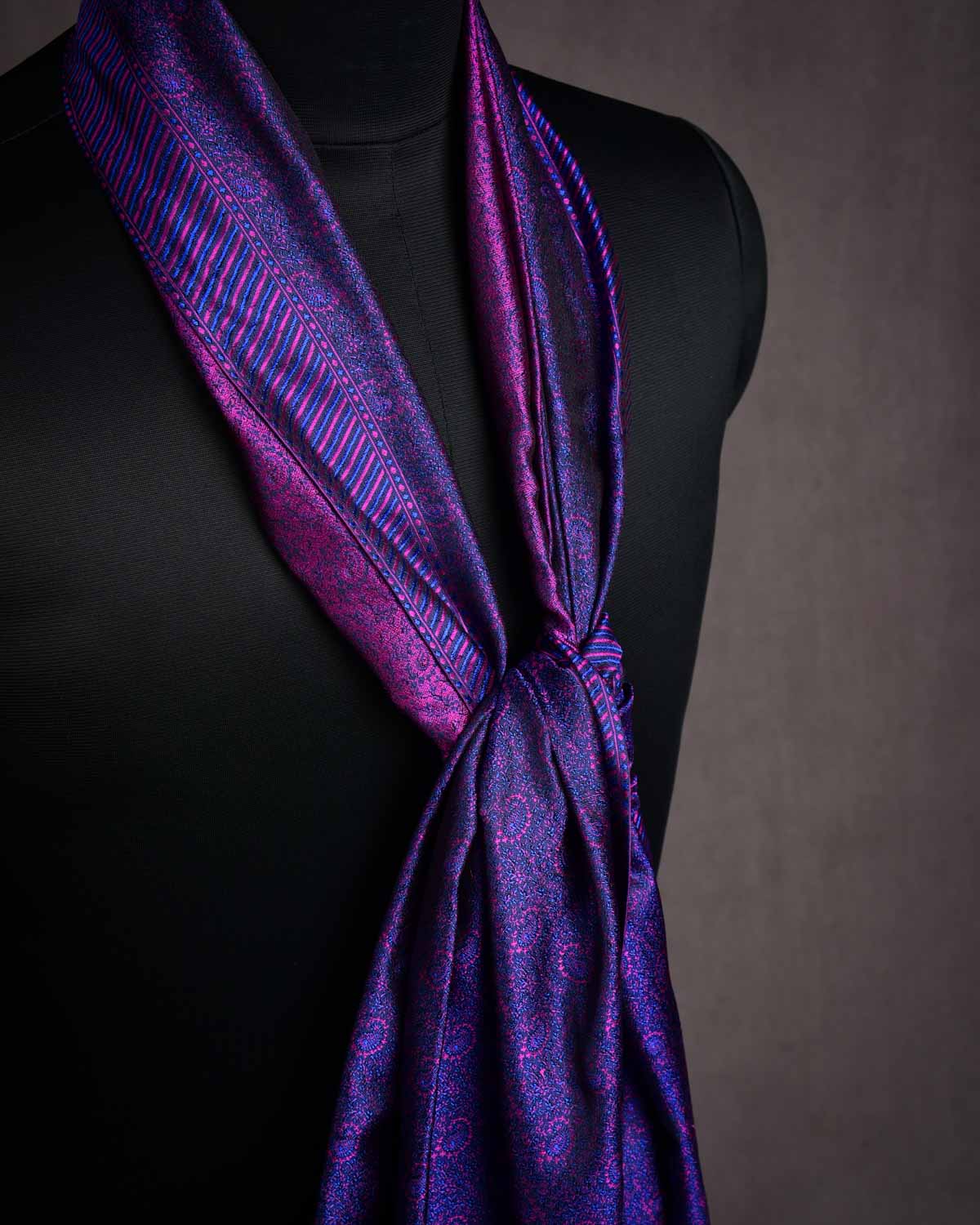 Purple Gold & Silver Zari Paisleys Satin Tanchoi Handwoven Katan Silk Banarasi Fabric Offer Price: ₹4,495.00 INR Regular Price: ₹6,590.00 INR