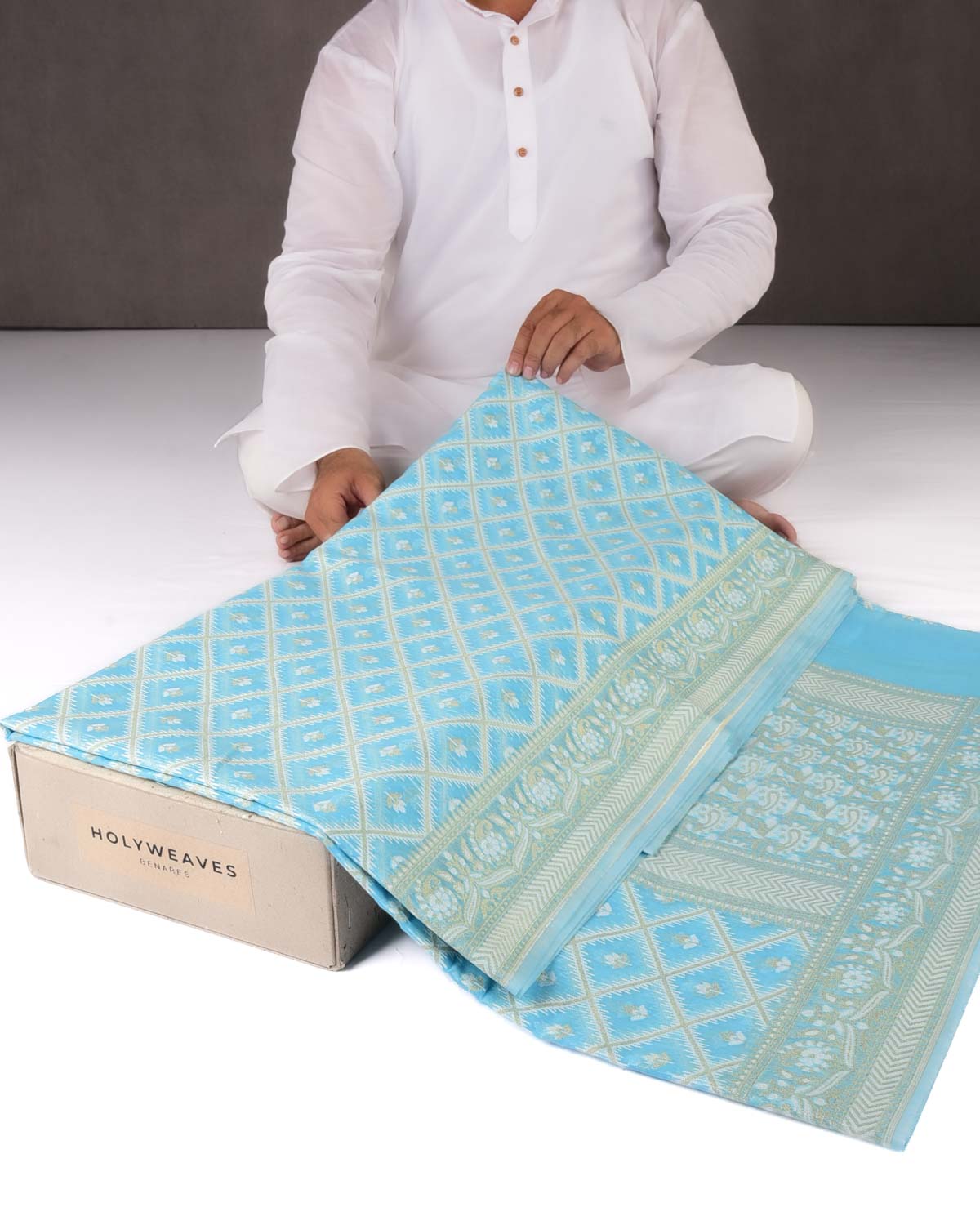 Metallic Silver Illusion Honeycomb Brocade Handwoven Katan Tissue Banarasi Fabric Offer Price: ₹3,495.00 INR Regular Price: ₹5,990.00 INR