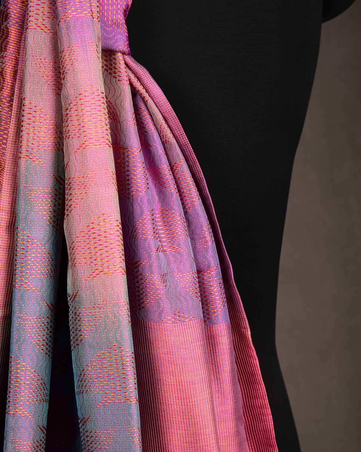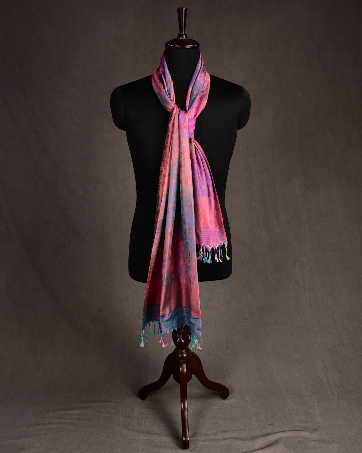 Save 25%Ombre Pink Silver Zari Herring Bone Leaves Handwoven Silk Pocket Square for Men with Stripe Borders-HolyWeavesOmbre Pink Silver Zari Herring Bone Leaves Handwoven Silk Pocket Square for Men with Stripe Borders-HolyWeaves