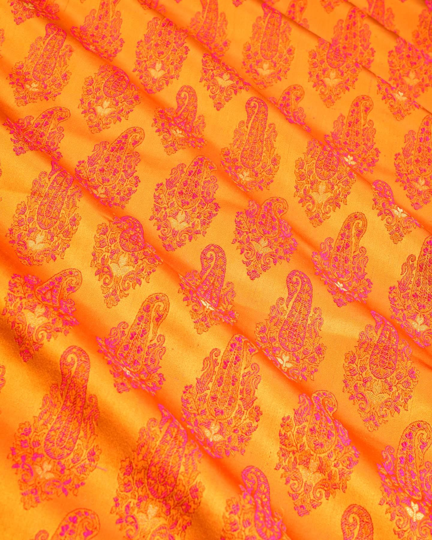 Golden Yellow Alfi Banarasi Dhakai Buti Cutwork Brocade Woven Cotton Silk Saree Offer Price: ₹4,395.00 INR Regular Price: ₹6,690.00 INR