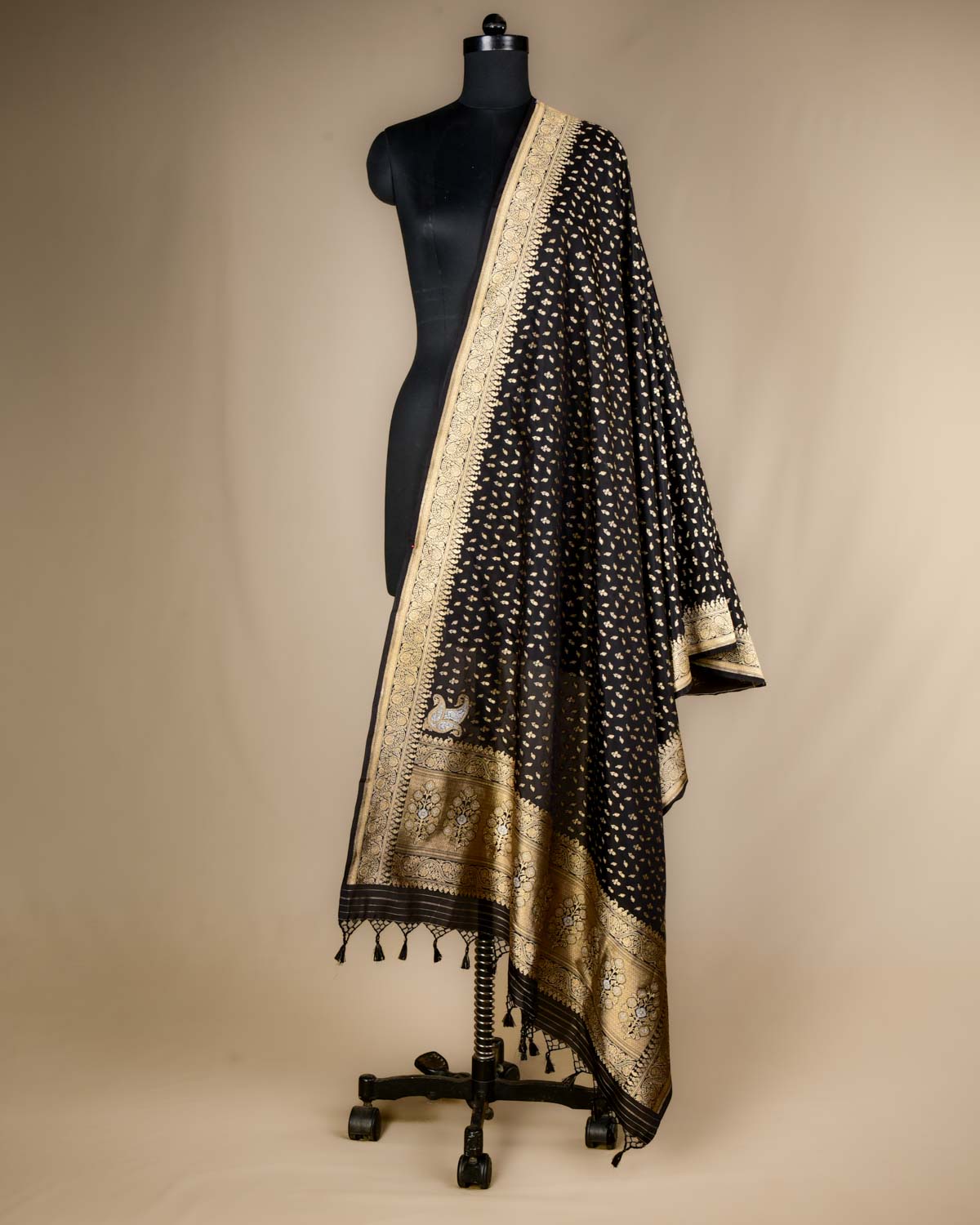 Save 32%Black Alfi Zari & Meenekari Buti Cutwork Brocade Woven Tasar Silk Saree with Contrast Border Pallu-HolyWeavesBlack Alfi Zari & Meenekari Buti Cutwork Brocade Woven Tasar Silk Saree with Contrast Border Pallu-HolyWeaves