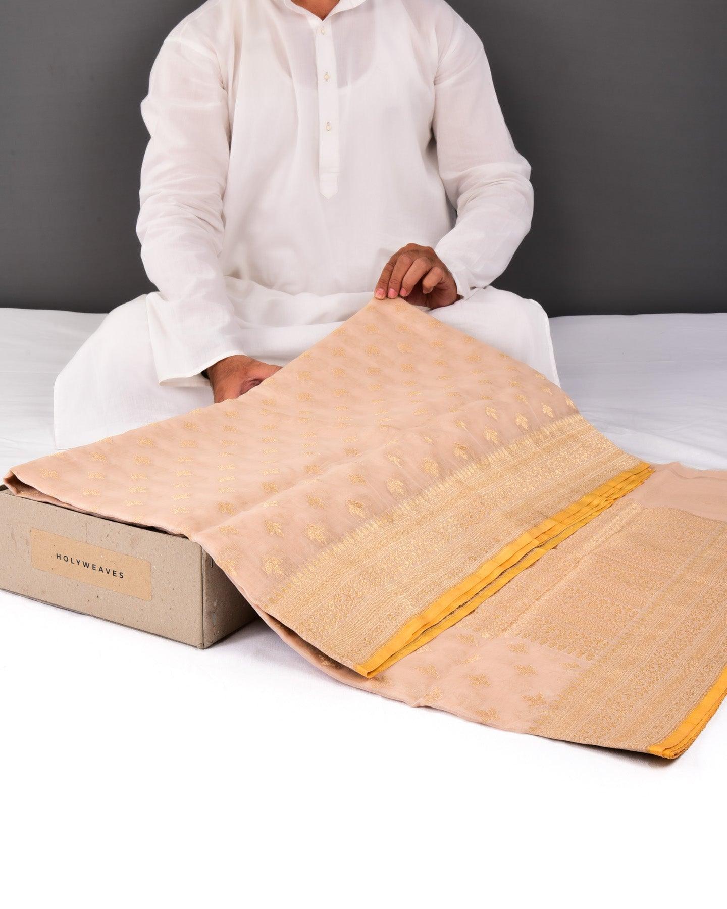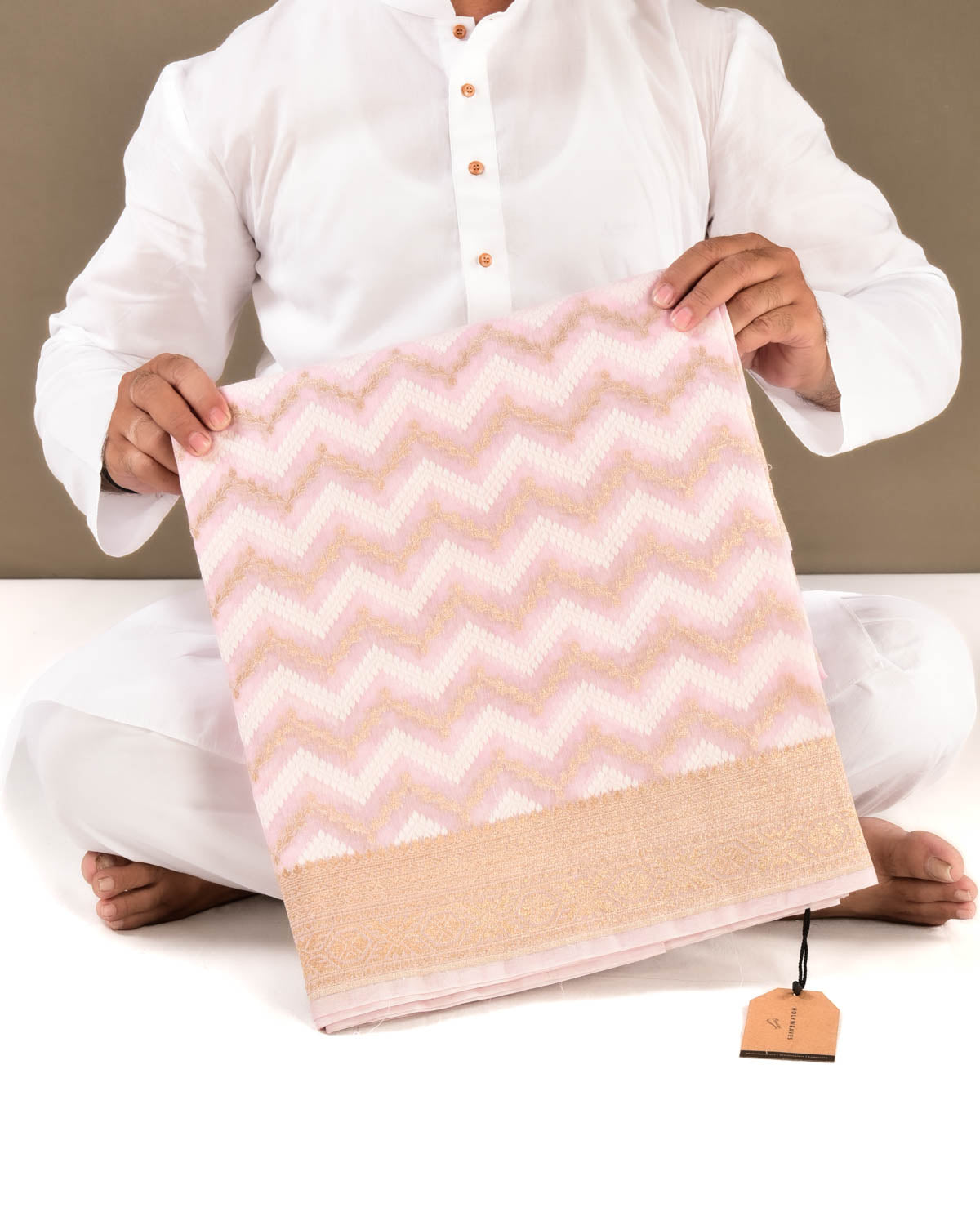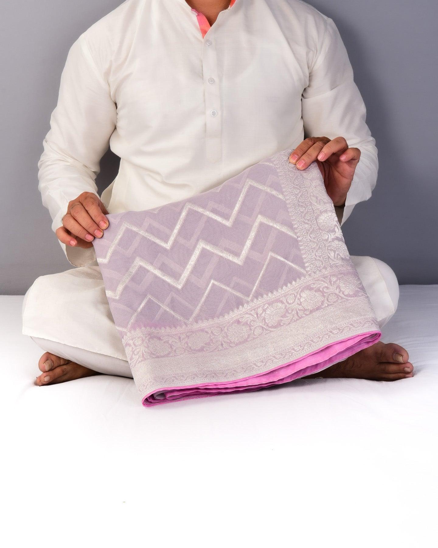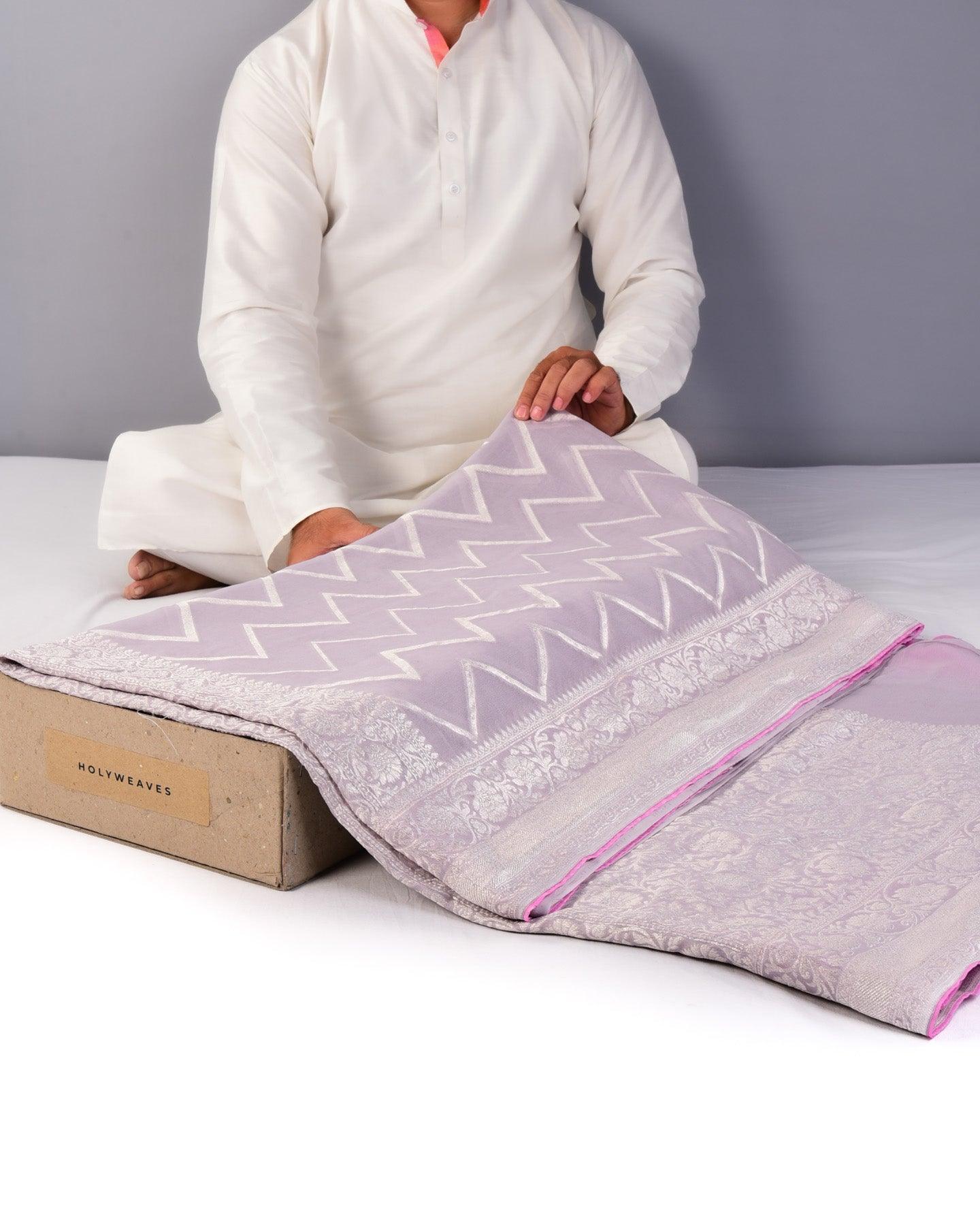 Ombre Pink Gray Gold Zari Border Pallu Brocade Woven Khaddi Georgette Banarasi Saree Offer Price: ₹9,395.00 INR Regular Price: ₹13,190.00 INR