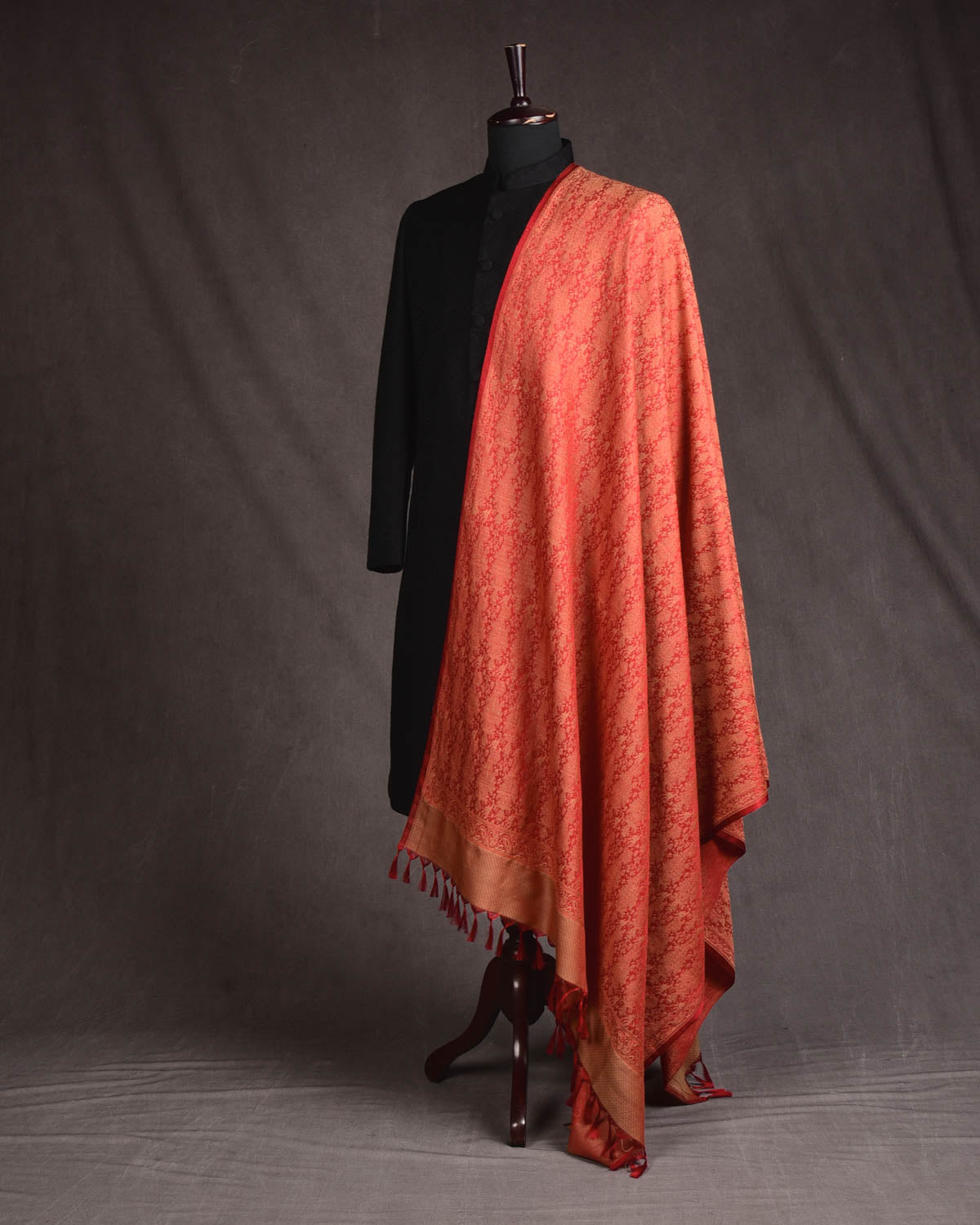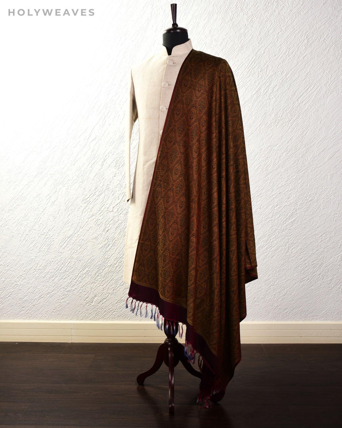 Metallic Mahogany Tehra Paisley Jamawar Handwoven Silk Unisex Scarf 80"x22" Offer Price: ₹9,995.00 INR Regular Price: ₹16,490.00 INR