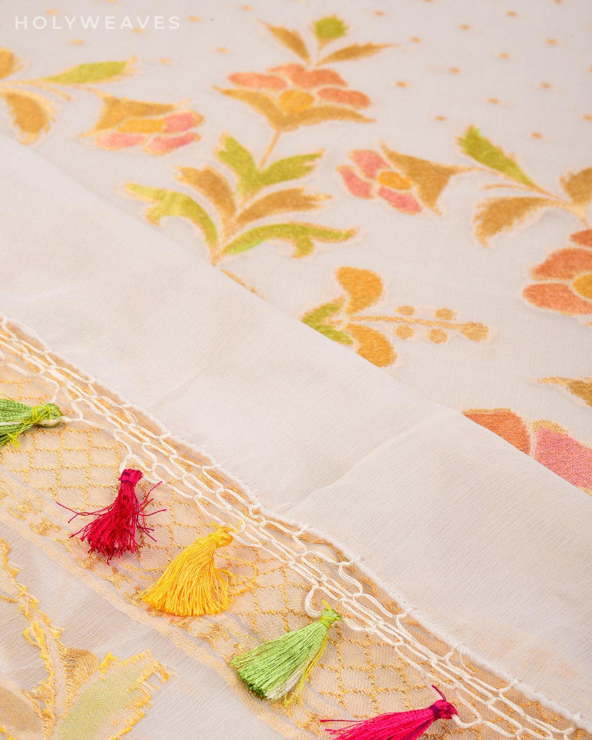 Cream Alfi Resham Buta Jaal Cutwork Brocade Woven Art Cotton Silk Banarasi Saree Offer Price: ₹6,095.00 INR Regular Price: ₹8,690.00 INR
