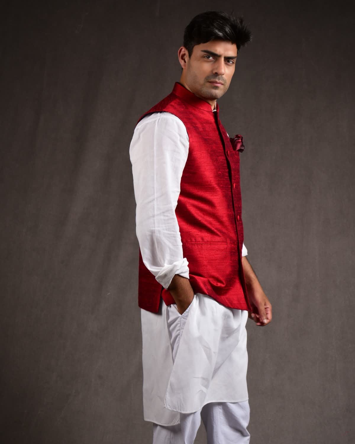 Maroon Tanchoi Katan Silk Mens Modi Jacket Offer Price: ₹9,995.00 INR Regular Price: ₹12,190.00 INR