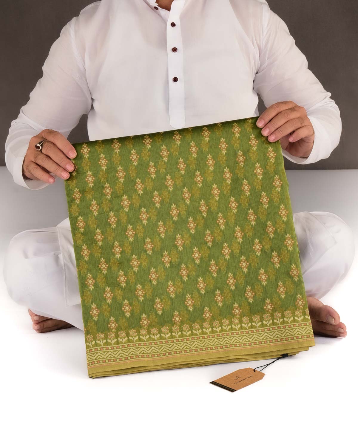Save 29%Green Banarasi Colored Gulab Zari Buti Kadhuan Brocade Handwoven Linen Silk Saree-HolyWeavesGreen Banarasi Colored Gulab Zari Buti Kadhuan Brocade Handwoven Linen Silk Saree-HolyWeaves