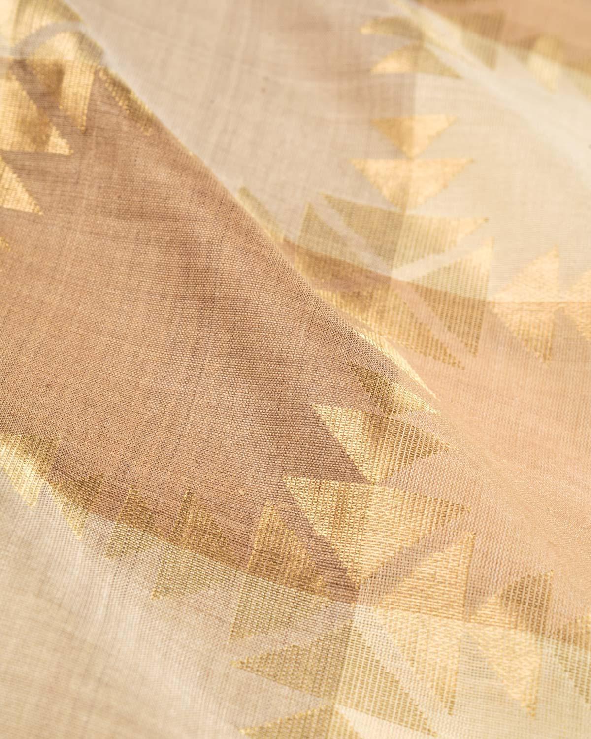 Save 40%Beige Banarasi Resham Damask Tanchoi Handwoven Cotton Potli with Gold Zari Accents 11"x10"-HolyWeaves