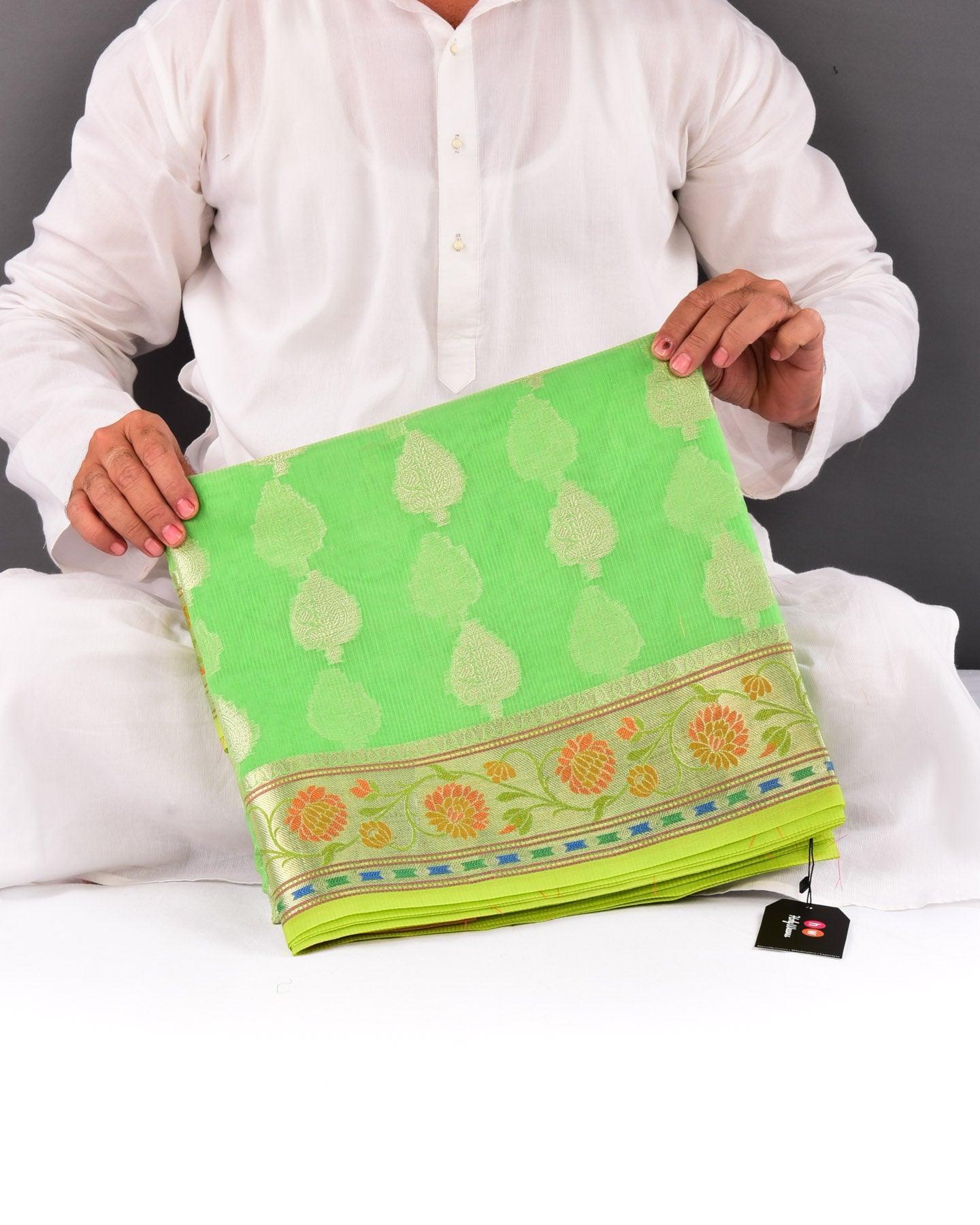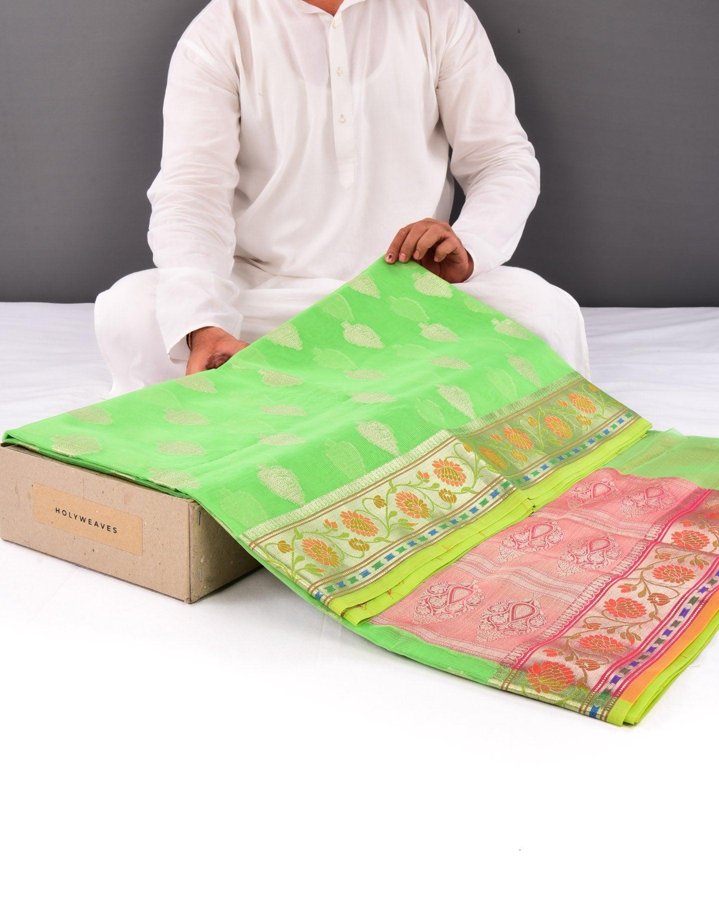 Save 29%Lime Green Banarasi Light Gold Jangla Cutwork Brocade Handwoven Cotton Silk Fabric - By HolyWeaves, BenaresLime Green Banarasi Light Gold Jangla Cutwork Brocade Handwoven Cotton Silk Fabric - By HolyWeaves, Benares