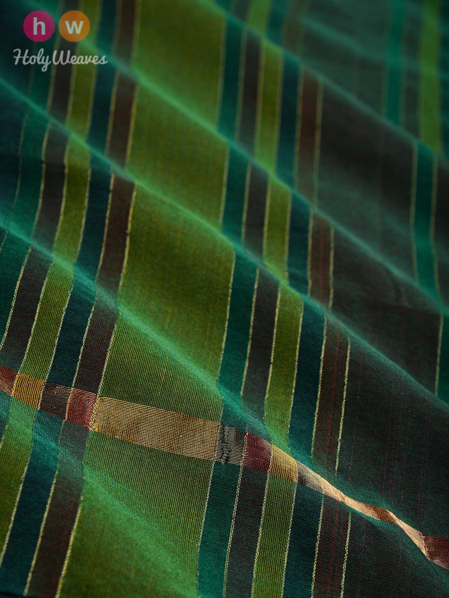 Save 25%Ombre Green Silver Zari Herring Bone Leaves Handwoven Silk Pocket Square for Men with Stripe Borders-HolyWeavesOmbre Green Silver Zari Herring Bone Leaves Handwoven Silk Pocket Square for Men with Stripe Borders-HolyWeaves