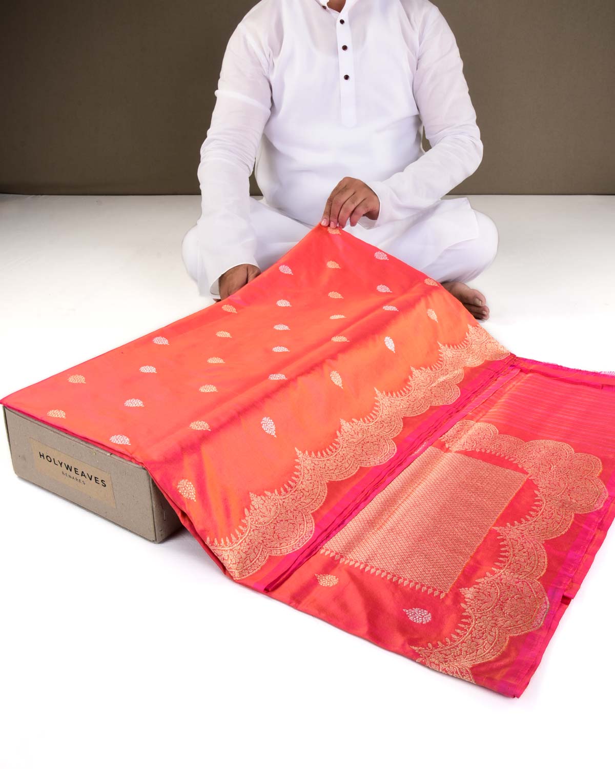 Peach Banarasi Gold & Silver Leaf Buta Kadhuan Brocade Handwoven Katan Silk Saree Offer Price: ₹26,595.00 INR Regular Price: ₹37,690.00 INR