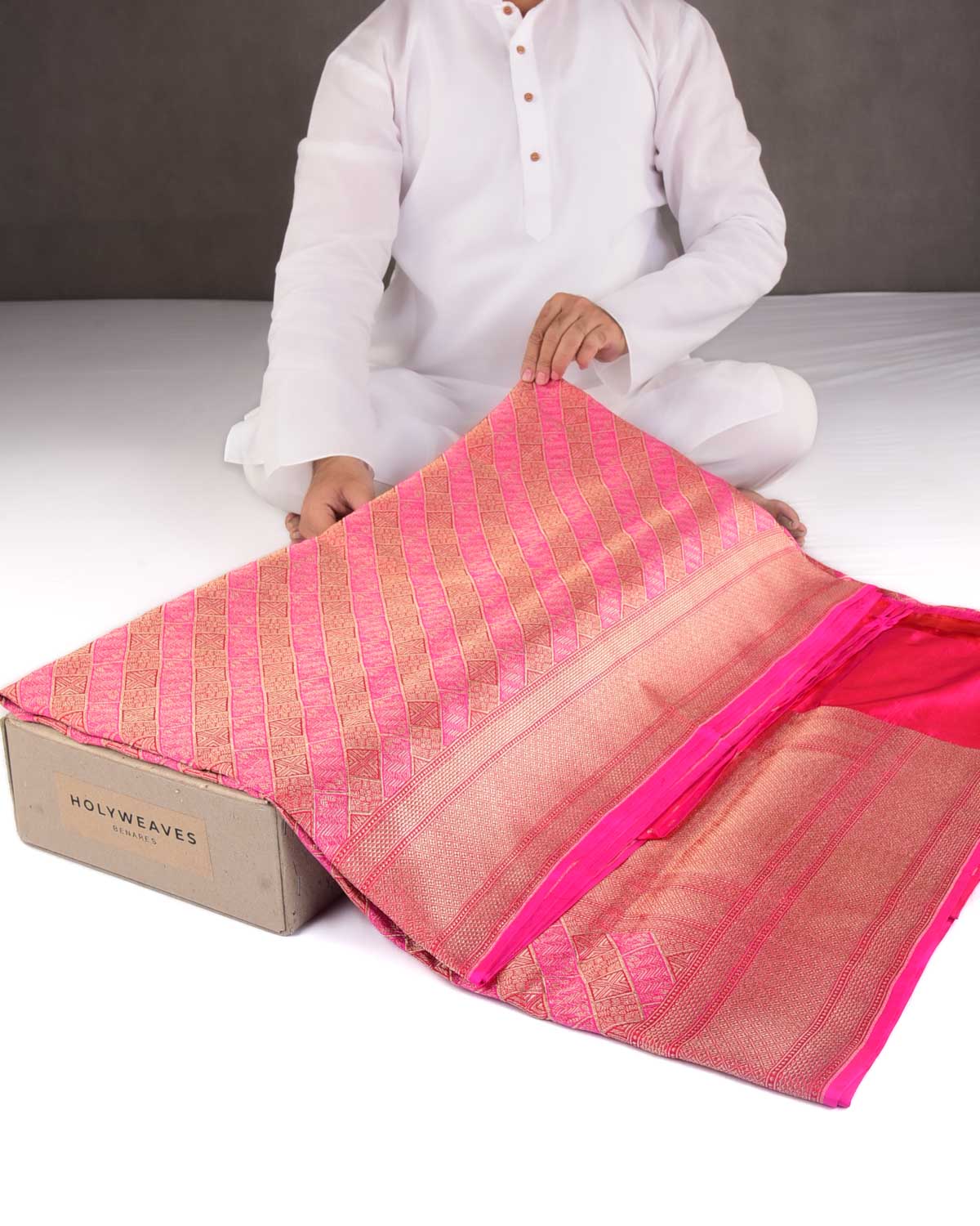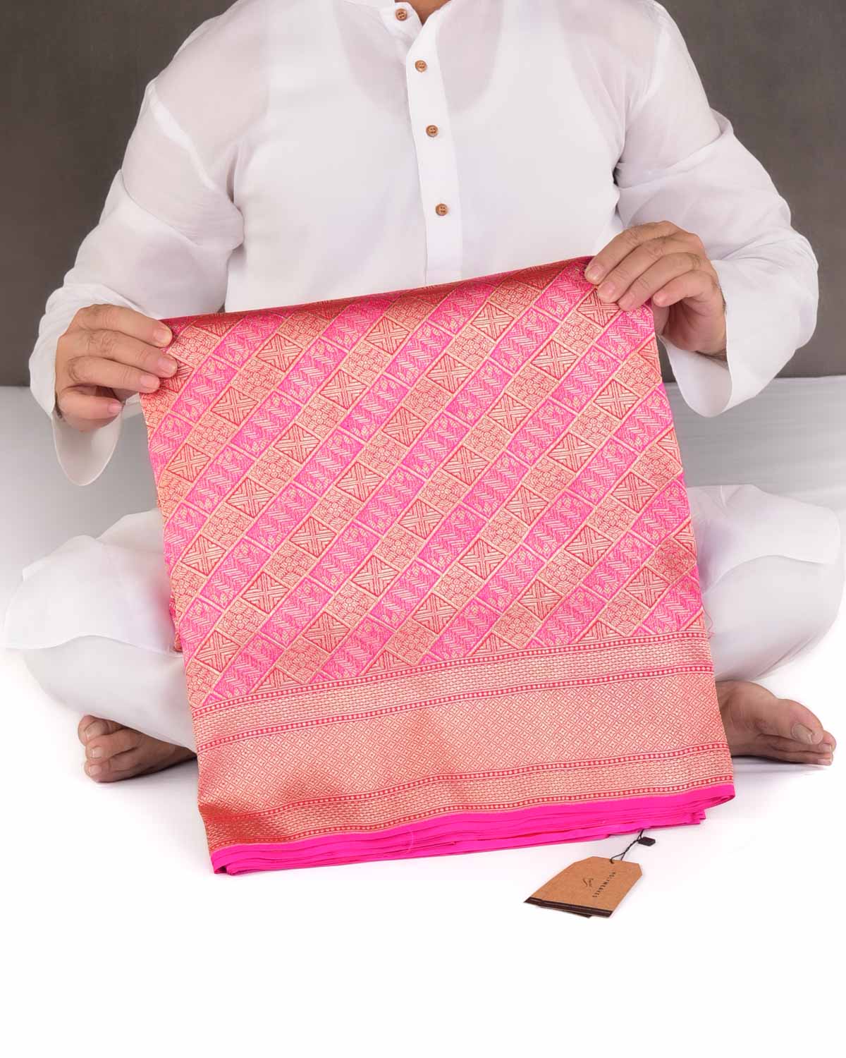 Save 30%Rani Pink Banarasi Gold Antique & Silver Zari Jangla Cutwork Brocade Handwoven Katan Silk Saree-HolyWeavesRani Pink Banarasi Gold Antique & Silver Zari Jangla Cutwork Brocade Handwoven Katan Silk Saree-HolyWeaves