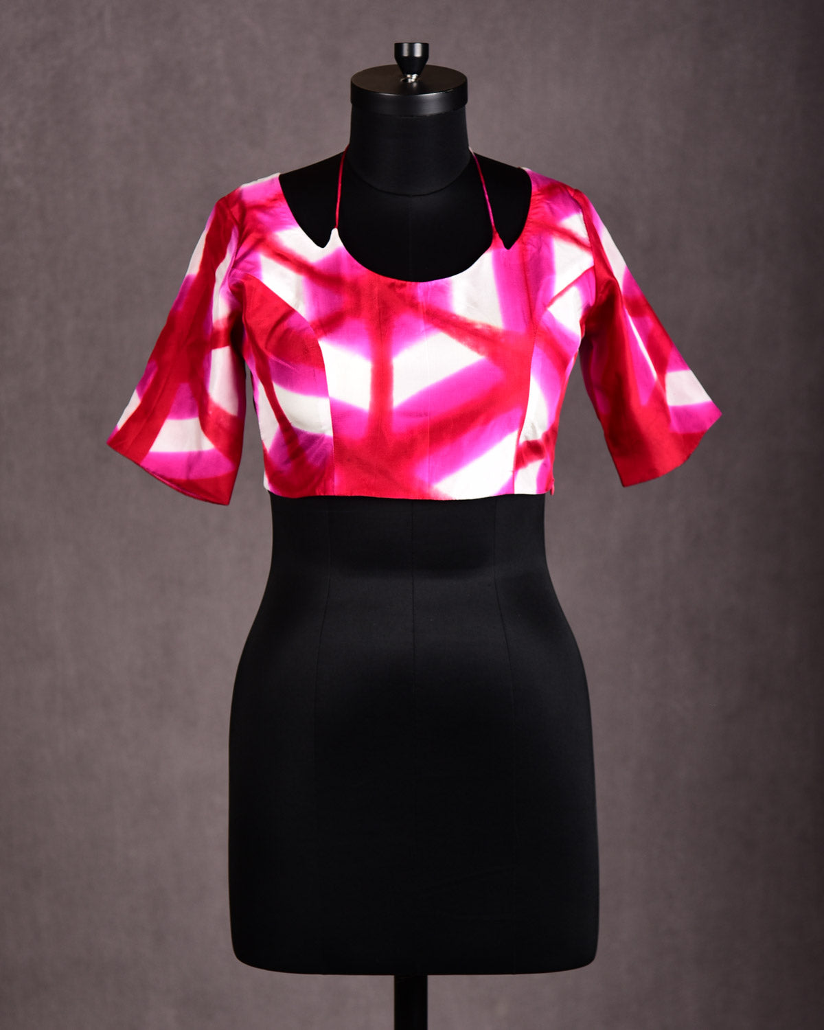 Pink Abstract Print Princess-Cut Silk Blouse Offer Price: ₹3,895.00 INR Regular Price: ₹5,490.00 INR