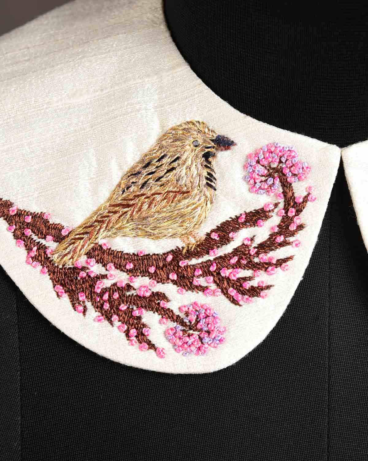 Pink Flowers & Butterflies Hand-embroidered Raw Silk Detachable Peter Pan Collar Offer Price: ₹3,995.00 INR Regular Price: ₹5,990.00 INR