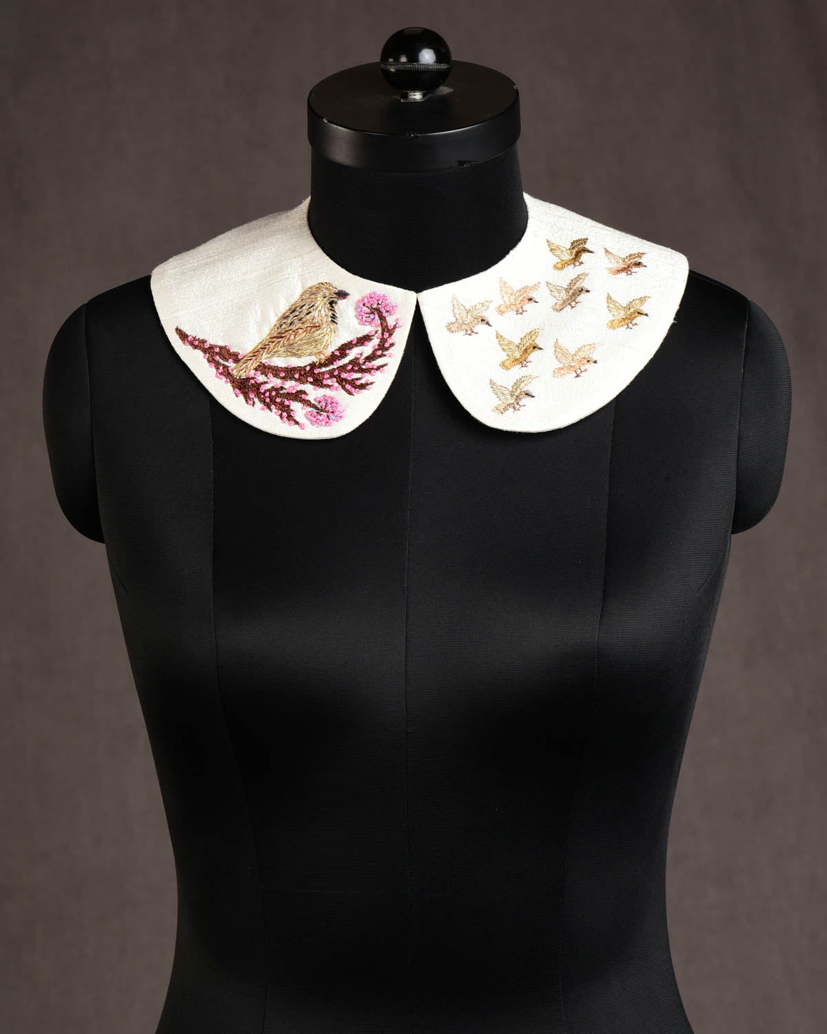 Cream Goraiyya Hand-embroidered Raw Silk Detachable Peter Pan Collar Offer Price: ₹3,495.00 INR Regular Price: ₹4,990.00 INR