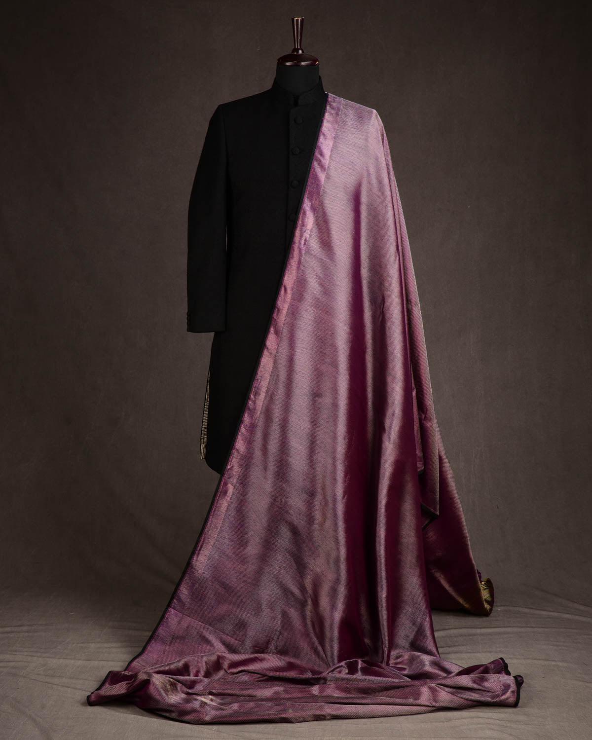 Purple Gold & Silver Zari Paisleys Satin Tanchoi Handwoven Katan Silk Banarasi Fabric Offer Price: ₹4,495.00 INR Regular Price: ₹6,590.00 INR
