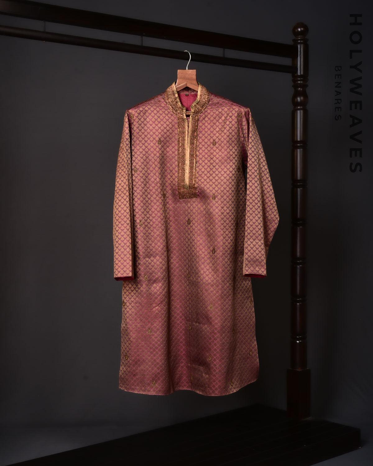 Pink Banarasi Hand-embroidered Cotton Silk Mens Kurta Pyjama Offer Price: ₹5,495.00 INR Regular Price: ₹7,790.00 INR