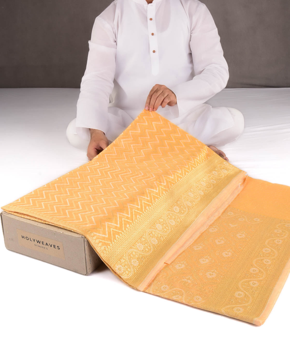 Save 24%White Gold Zari And resham Chevron Cutwork Brocade Woven Art Cotton Silk Banarasi Saree-HolyWeavesWhite Gold Zari And resham Chevron Cutwork Brocade Woven Art Cotton Silk Banarasi Saree-HolyWeaves
