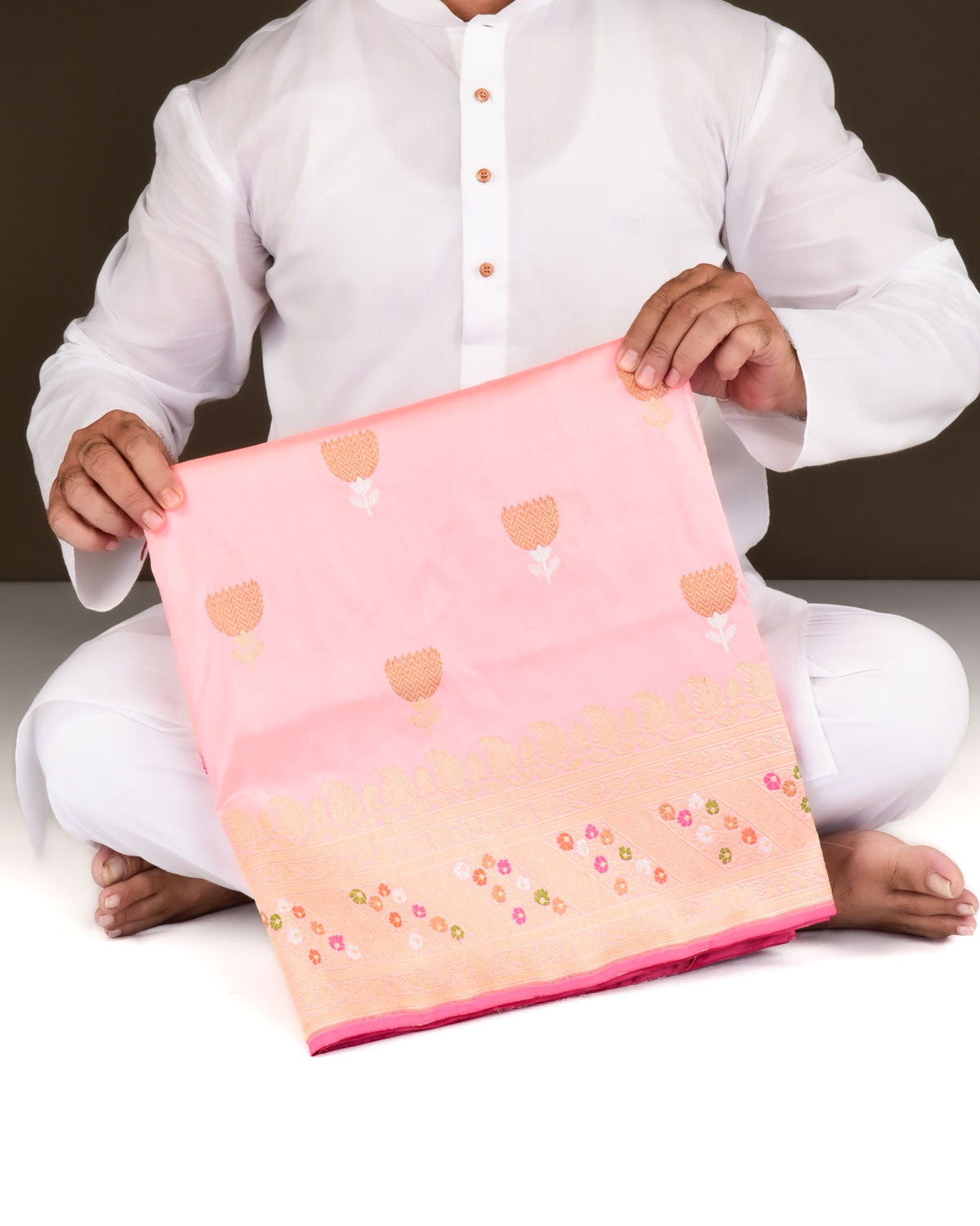 Rainbow Pink Kadhuan Brocade Handwoven Katan Silk Banarasi Saree Offer Price: ₹29,995.00 INR Regular Price: ₹43,990.00 INR
