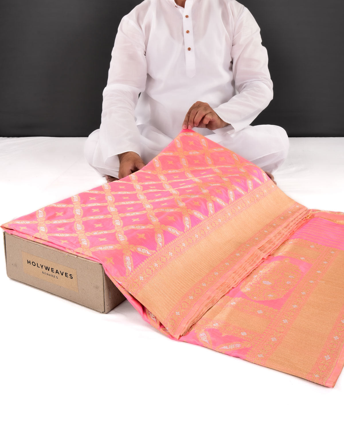 Save 30%Pink Banarasi Gold Zari Kadhuan Brocade Handwoven Katan Silk Saree-HolyWeavesPink Banarasi Gold Zari Kadhuan Brocade Handwoven Katan Silk Saree-HolyWeaves