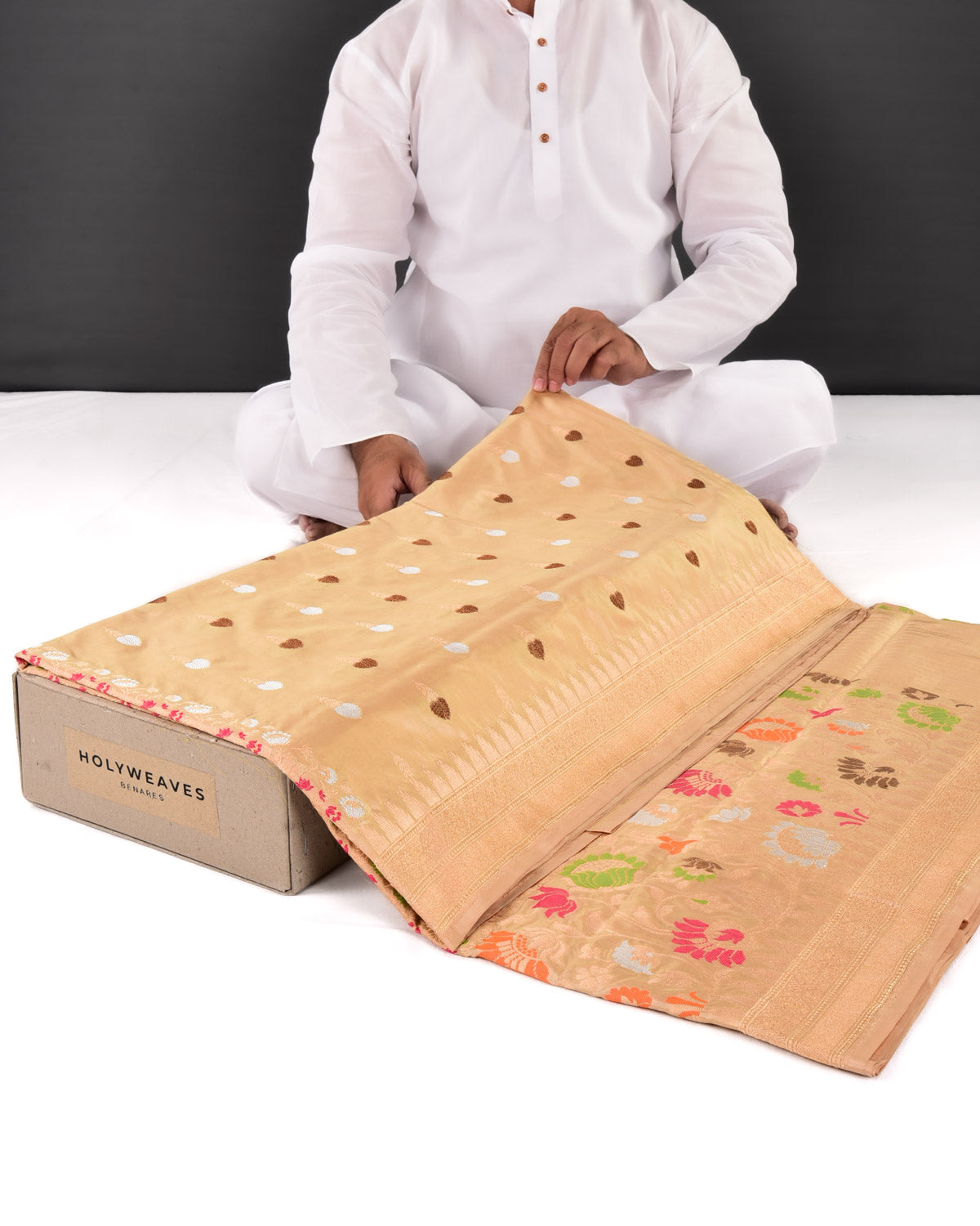 Save 37%Shot Peach Gold & Silver Zari Bachcha Buti Kadhuan Brocade Handwoven Katan Silk Banarasi Saree-HolyWeavesShot Peach Gold & Silver Zari Bachcha Buti Kadhuan Brocade Handwoven Katan Silk Banarasi Saree-HolyWeaves