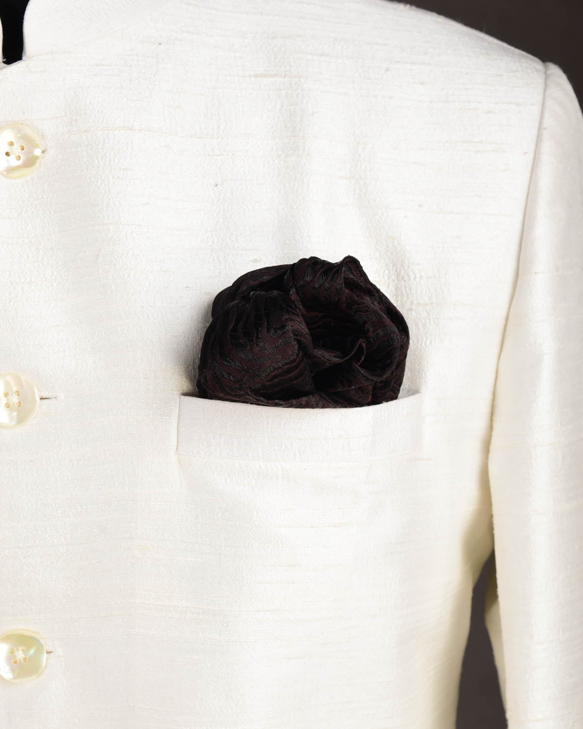 Black Banarasi Damask Tanchoi Handwoven Silk Wool Pocket Square Offer Price: ₹2,195.00 INR Regular Price: ₹3,290.00 INR