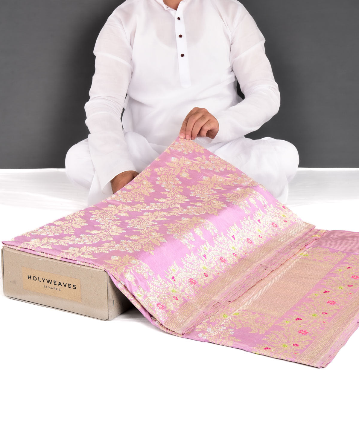 Save 30%Pink Banarasi Gold & Silver Zari Buti Cutwork Brocade Handwoven Handloom Cotton Saree-HolyWeavesPink Banarasi Gold & Silver Zari Buti Cutwork Brocade Handwoven Handloom Cotton Saree-HolyWeaves
