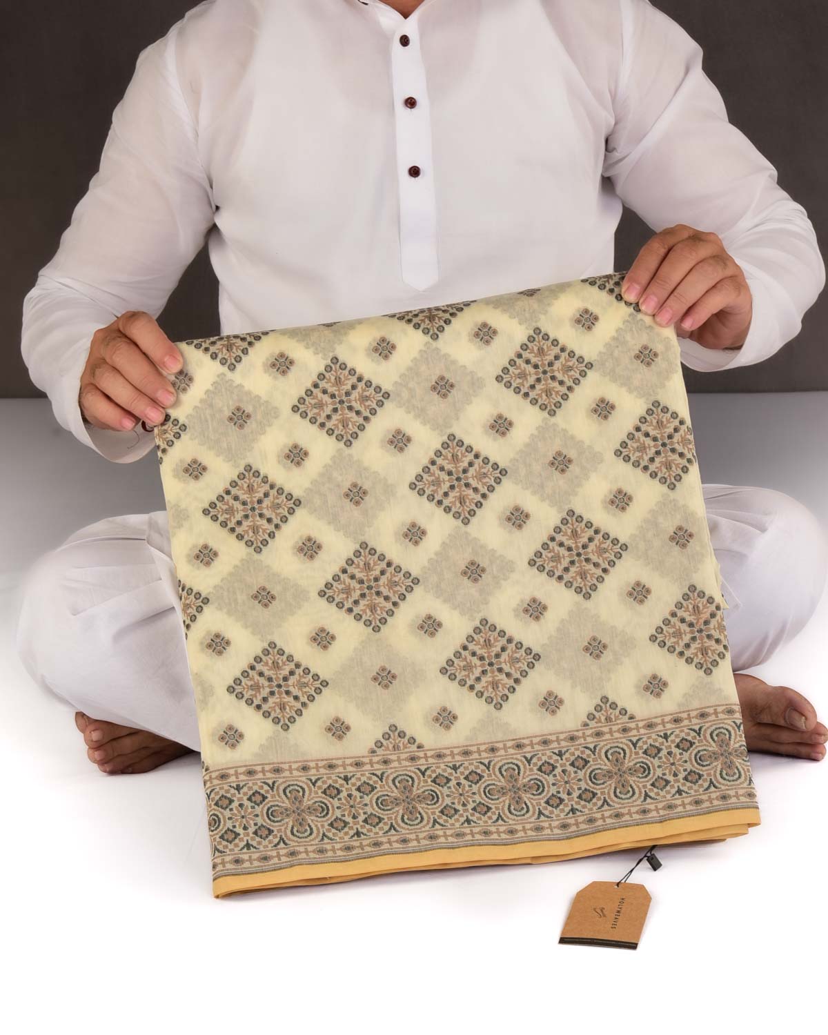 Save 29%Beige Floral Jaal Printed Lightweight Muga Silk Saree with Zari Border-HolyWeavesBeige Floral Jaal Printed Lightweight Muga Silk Saree with Zari Border-HolyWeaves