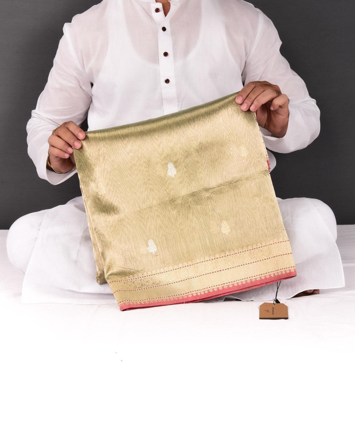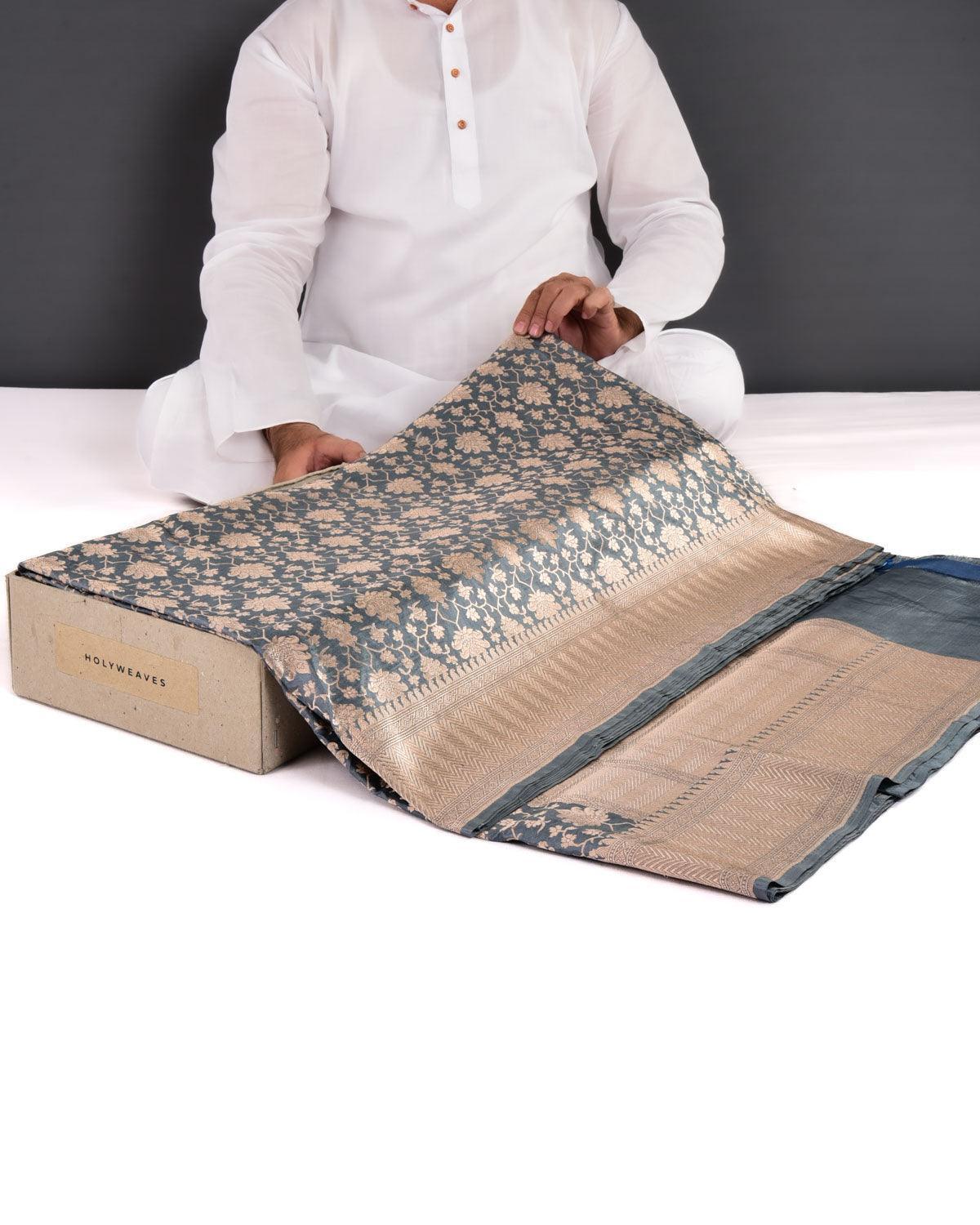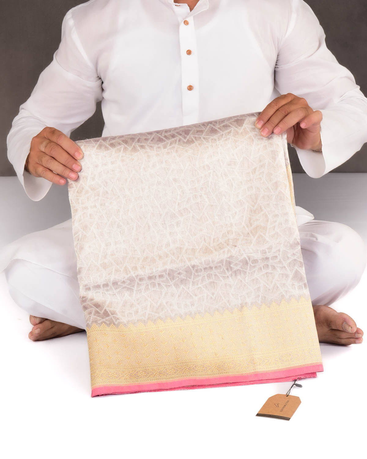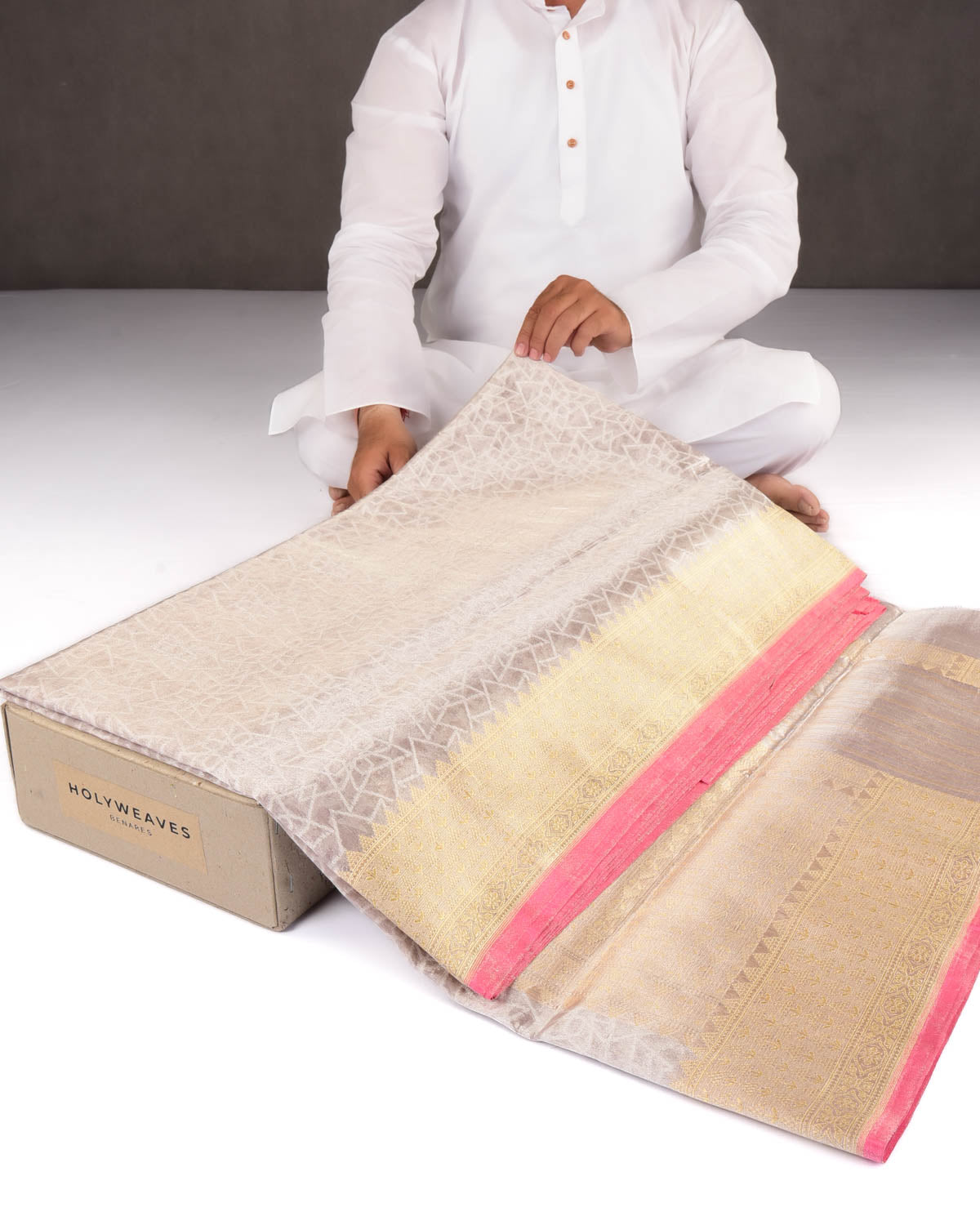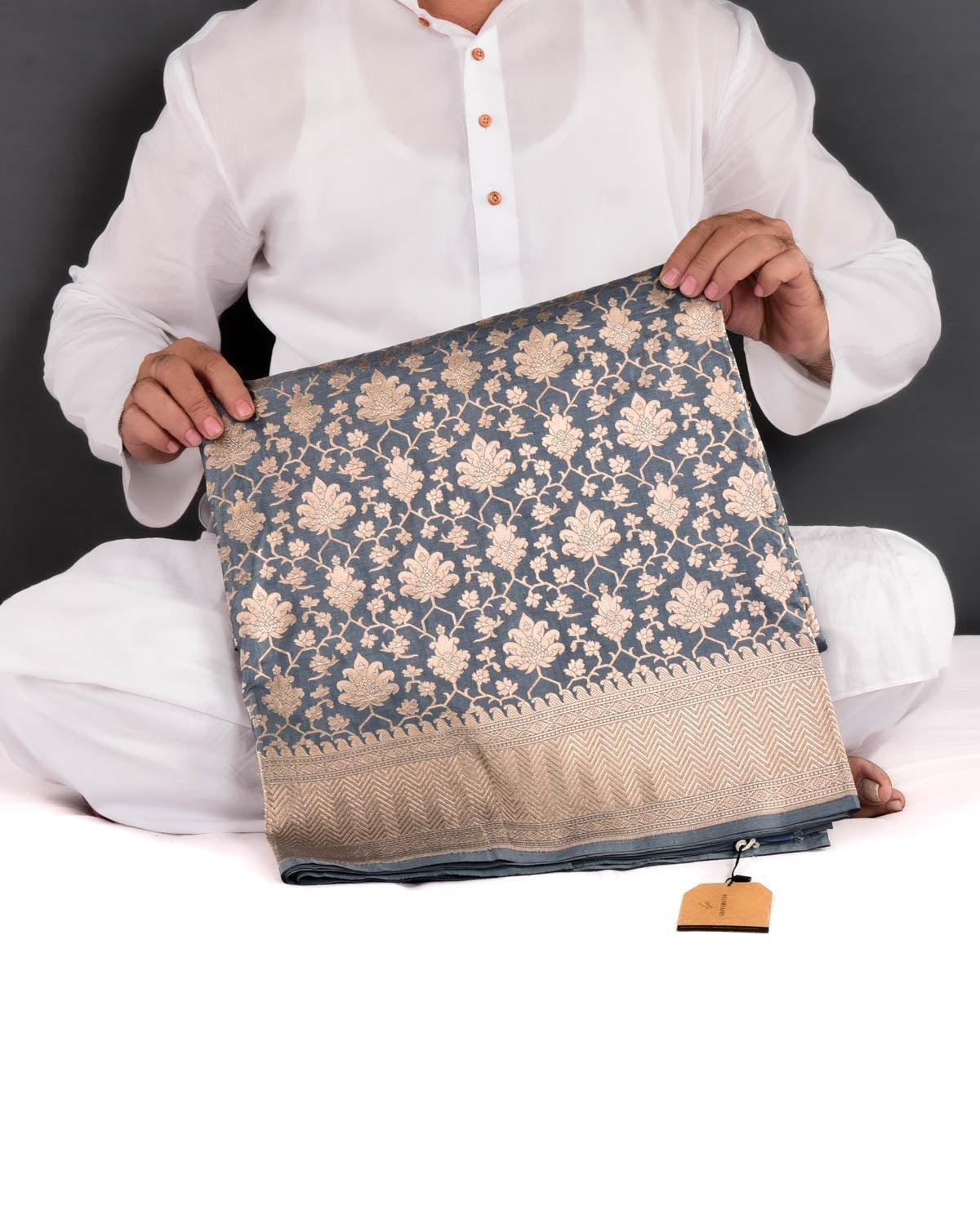 Save 36%Stone Gray Gold Zari Cutwork Brocade Handwoven Kora Silk Banarasi Saree with Satin Meenekari Border Pallu-HolyWeavesStone Gray Gold Zari Cutwork Brocade Handwoven Kora Silk Banarasi Saree with Satin Meenekari Border Pallu-HolyWeaves