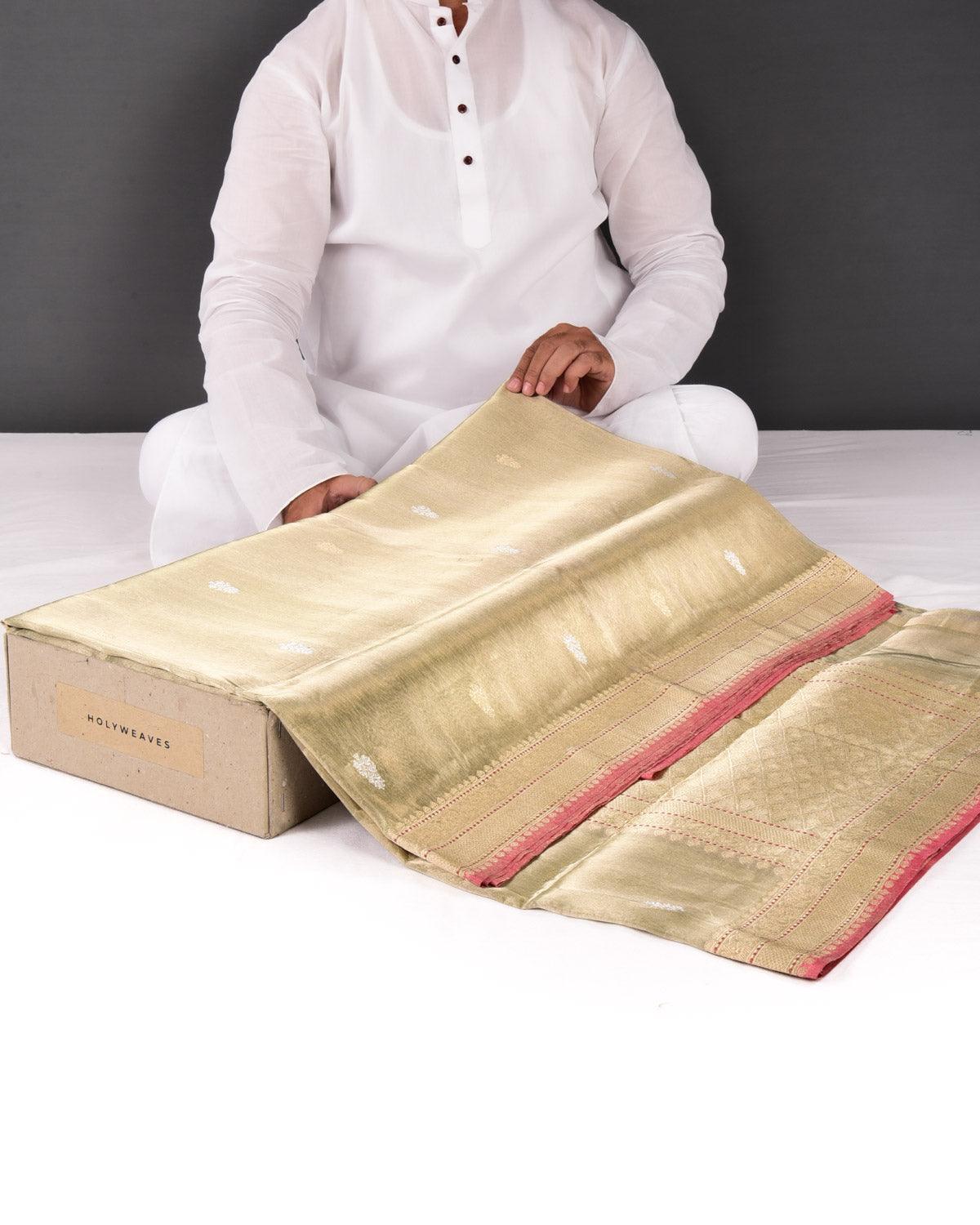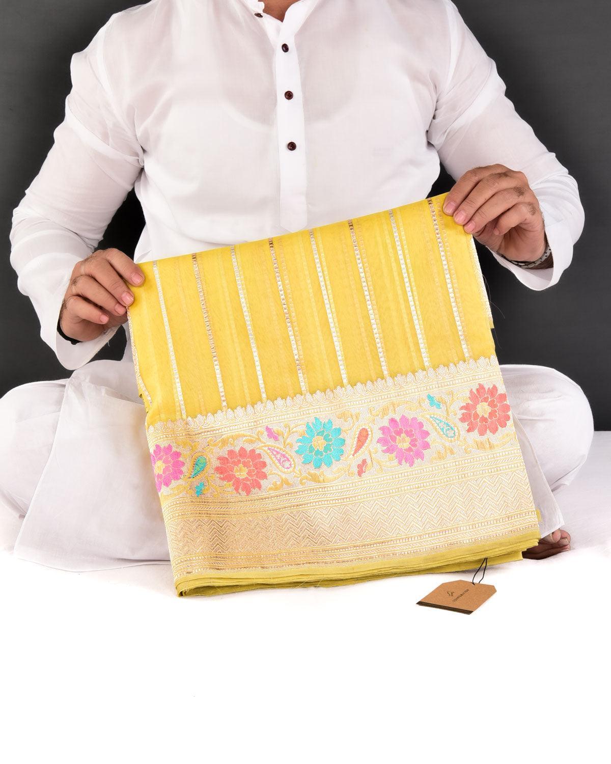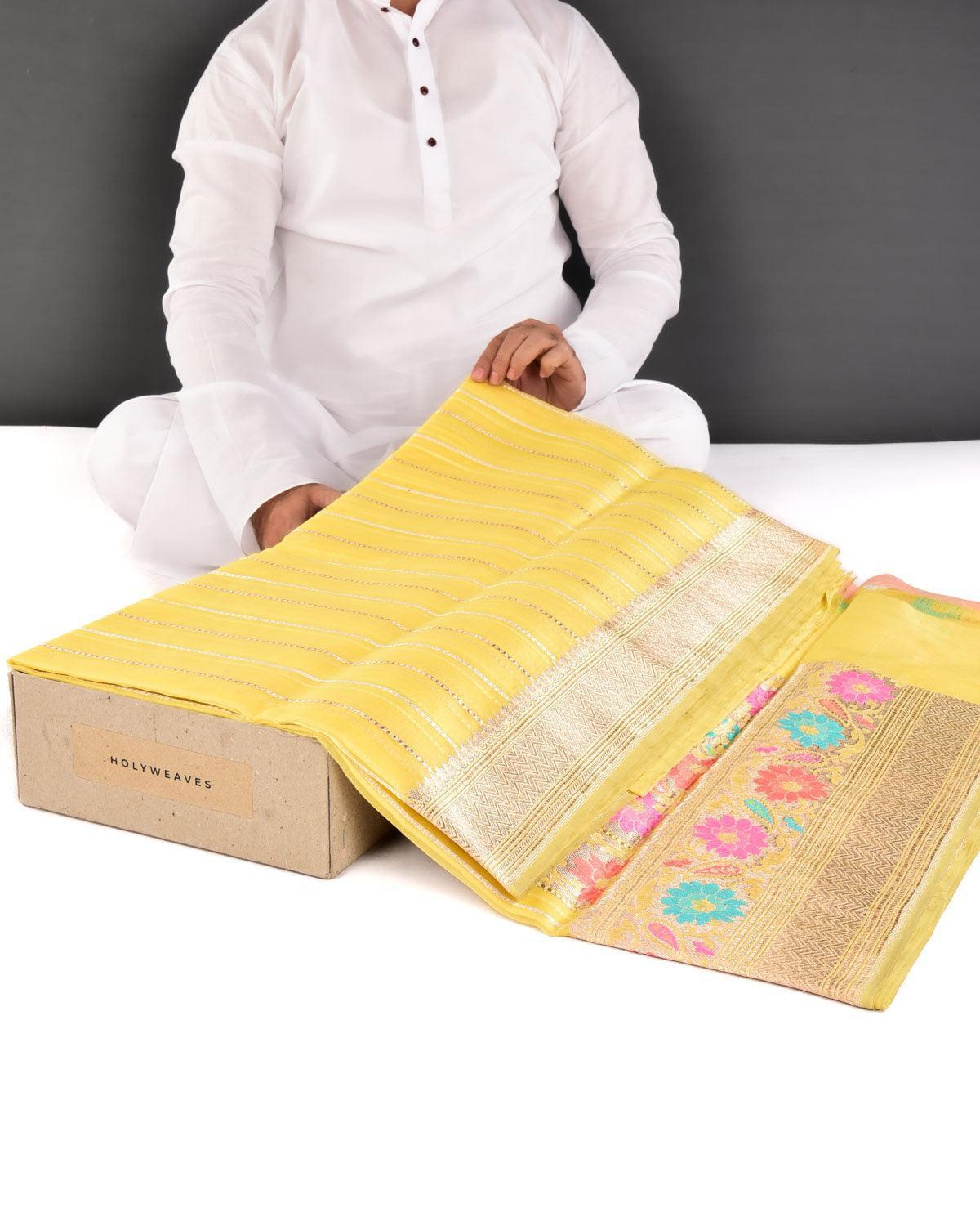 Save 36%Yellow Gold & Silver Zari Cutwork Brocade Handwoven Kora Silk Banarasi Saree with Satin Meenekari Border Pallu-HolyWeavesYellow Gold & Silver Zari Cutwork Brocade Handwoven Kora Silk Banarasi Saree with Satin Meenekari Border Pallu-HolyWeaves