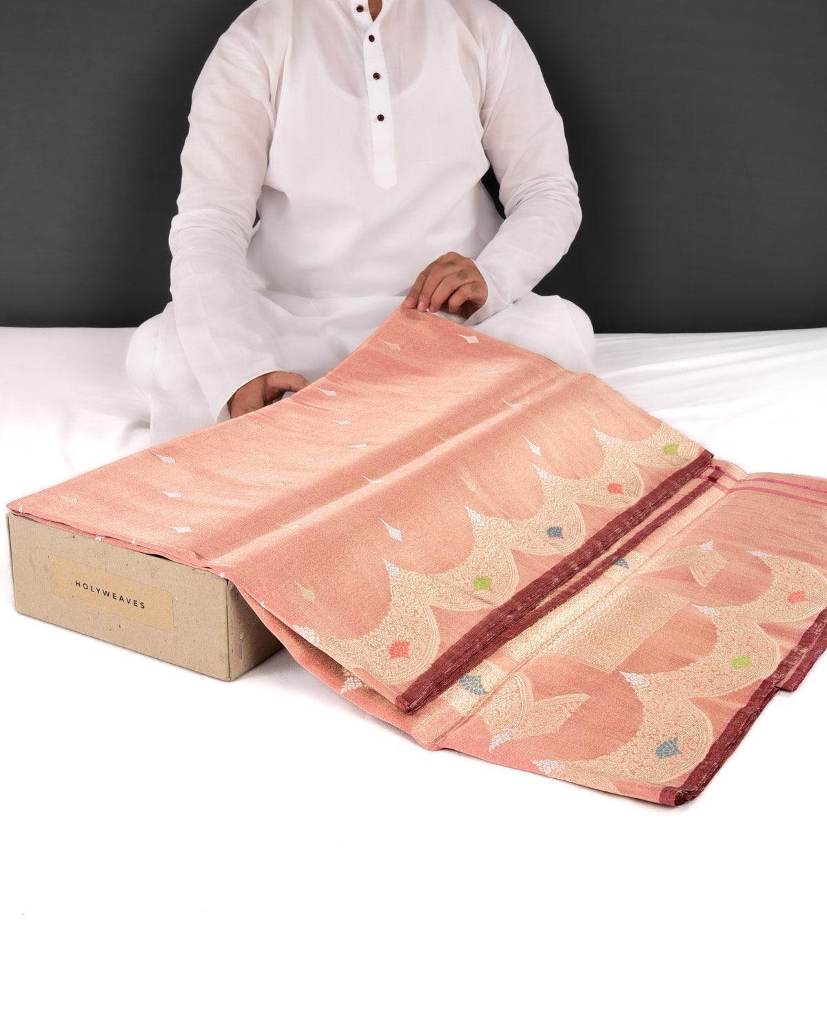 Save 31%Peach Banarasi Gold Zari Ghani Paisley Buti Brocade Handwoven Katan Silk Saree-HolyWeavesPeach Banarasi Gold Zari Ghani Paisley Buti Brocade Handwoven Katan Silk Saree-HolyWeaves