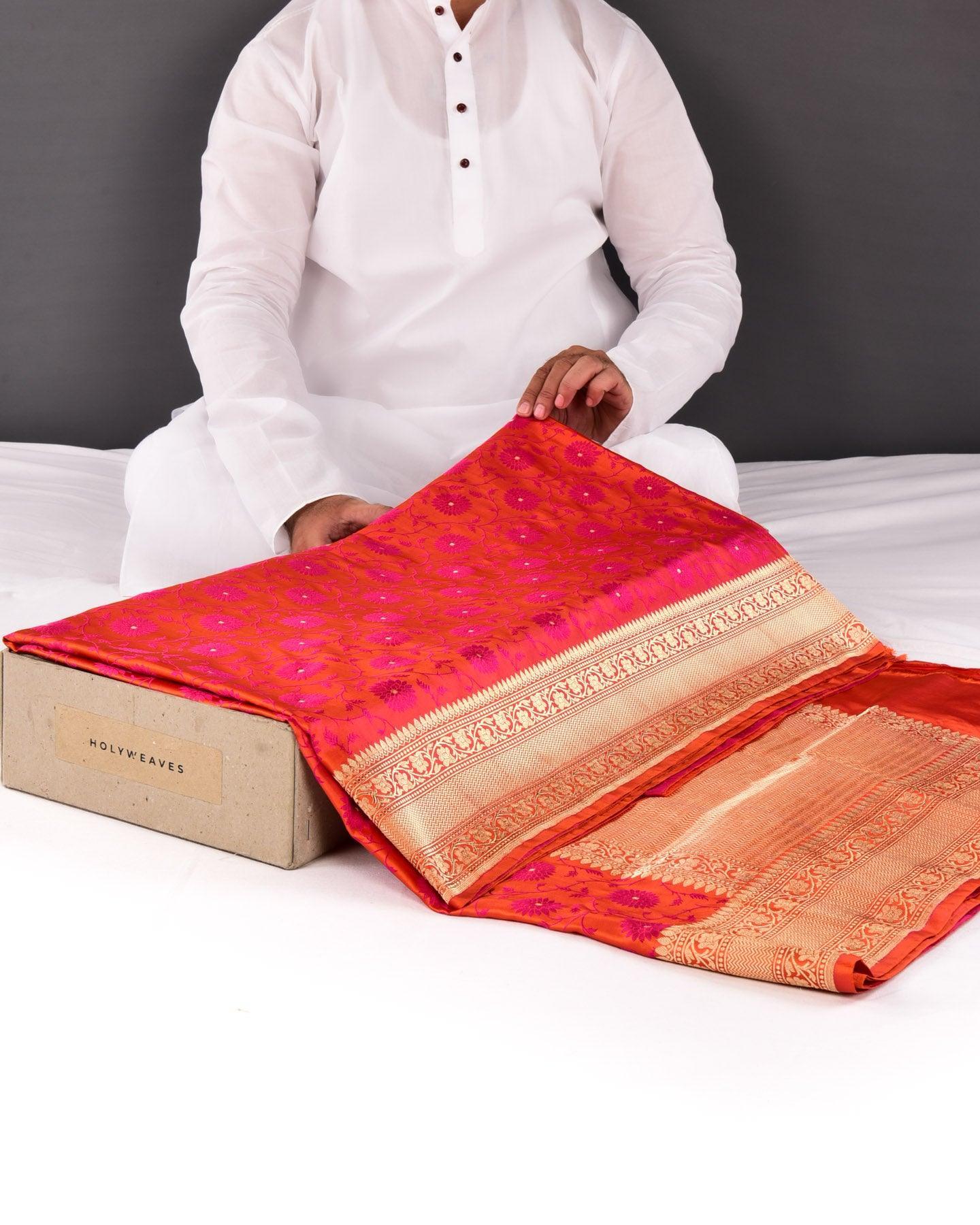 Save 29%Bridal Red Banarasi Gold & Silver Zari Floral Jaal Cutwork Brocade Handwoven Katan Silk Saree-HolyWeavesBridal Red Banarasi Gold & Silver Zari Floral Jaal Cutwork Brocade Handwoven Katan Silk Saree-HolyWeaves