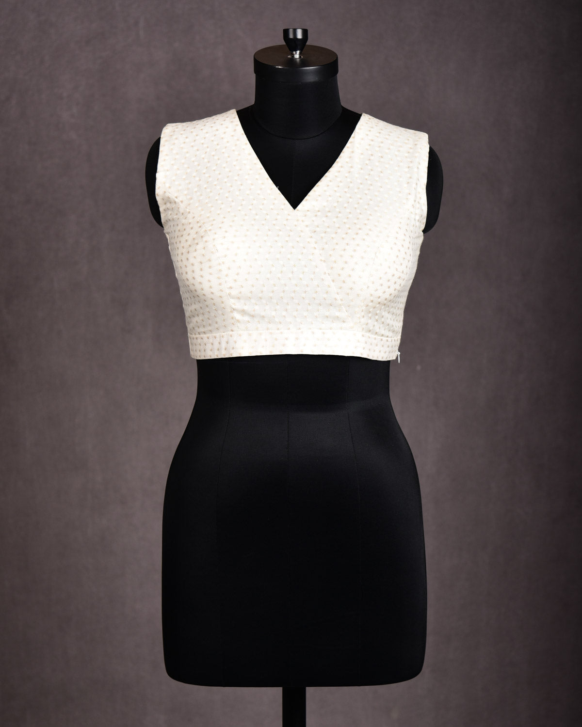 Save 24%Ivory White Slub Textured Brocade Woven Poly Cotton Dupion Banarasi Saree with Gold Zari Border Pallu-HolyWeavesIvory White Slub Textured Brocade Woven Poly Cotton Dupion Banarasi Saree with Gold Zari Border Pallu-HolyWeaves