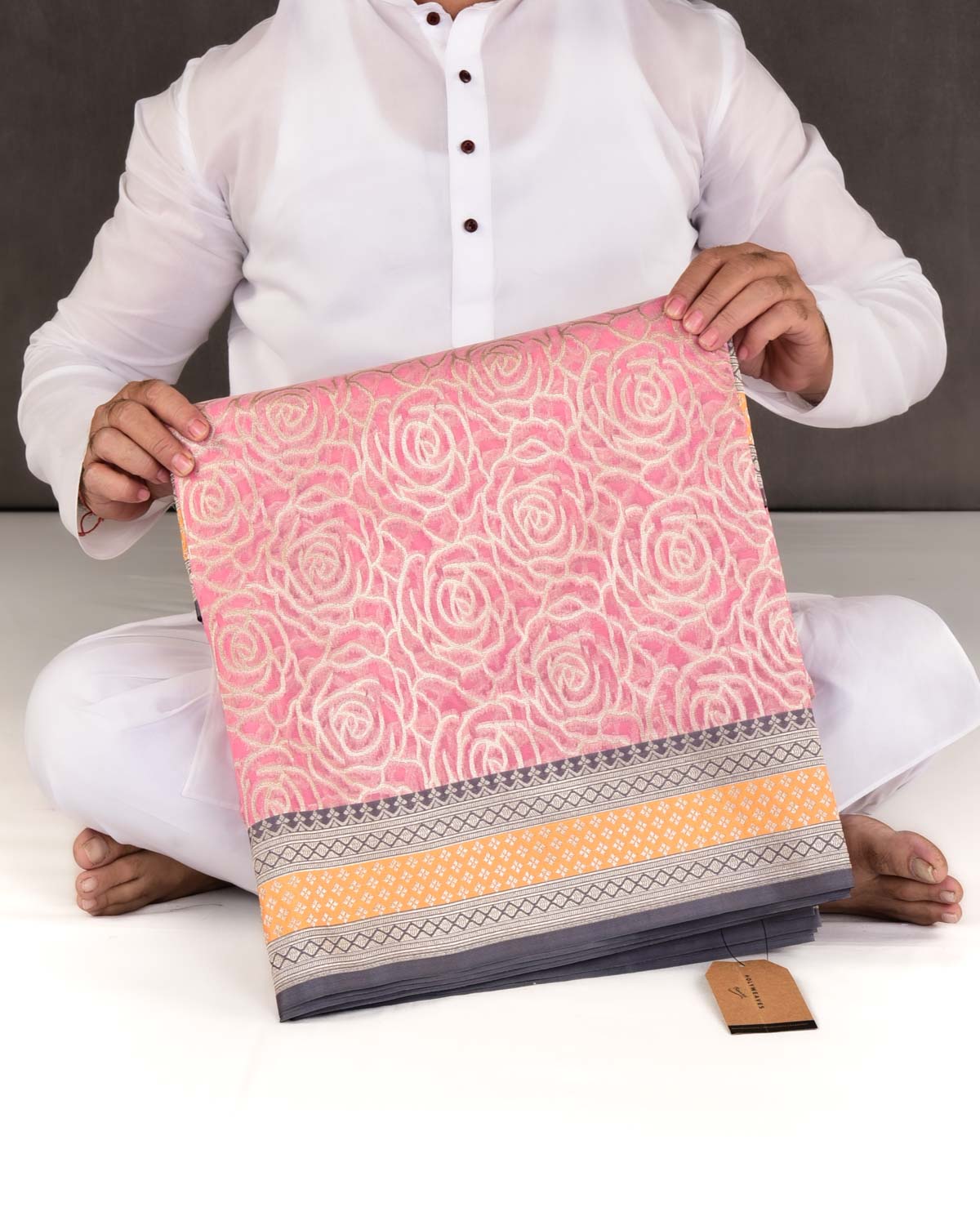 Save 29%Black Banarasi Gold Zari and Resham Gulab Jaal Tanchoi Brocade Handwoven Katan Silk Fabric-HolyWeavesBlack Banarasi Gold Zari and Resham Gulab Jaal Tanchoi Brocade Handwoven Katan Silk Fabric-HolyWeaves