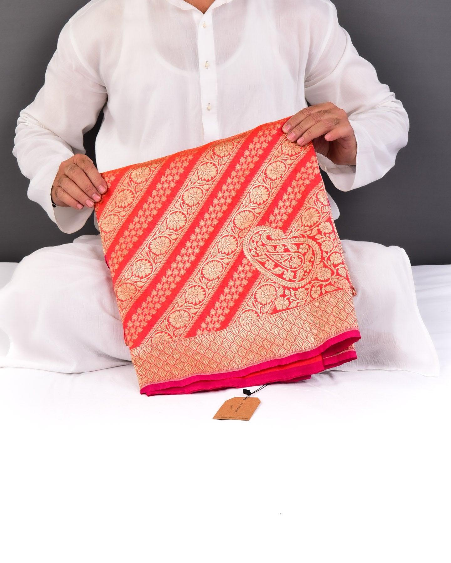 Save 27%Red Gold Zari Stripes Brocade Woven Muga Silk Banarasi Saree-HolyWeavesRed Gold Zari Stripes Brocade Woven Muga Silk Banarasi Saree-HolyWeaves
