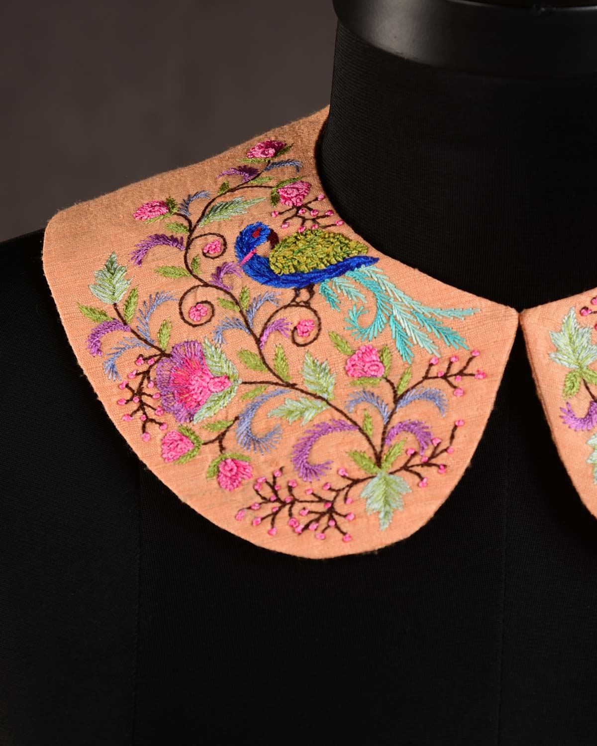 Peach Fern Leaves Hand-embroidered Raw Silk Detachable Peter Pan Collar Offer Price: ₹3,995.00 INR Regular Price: ₹5,990.00 INR