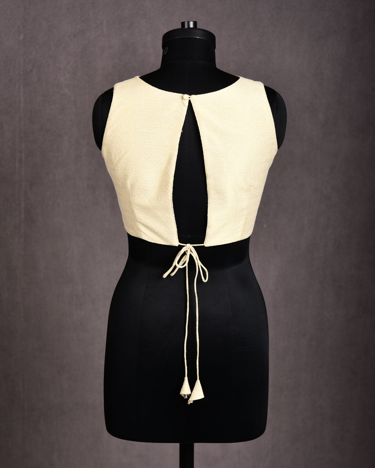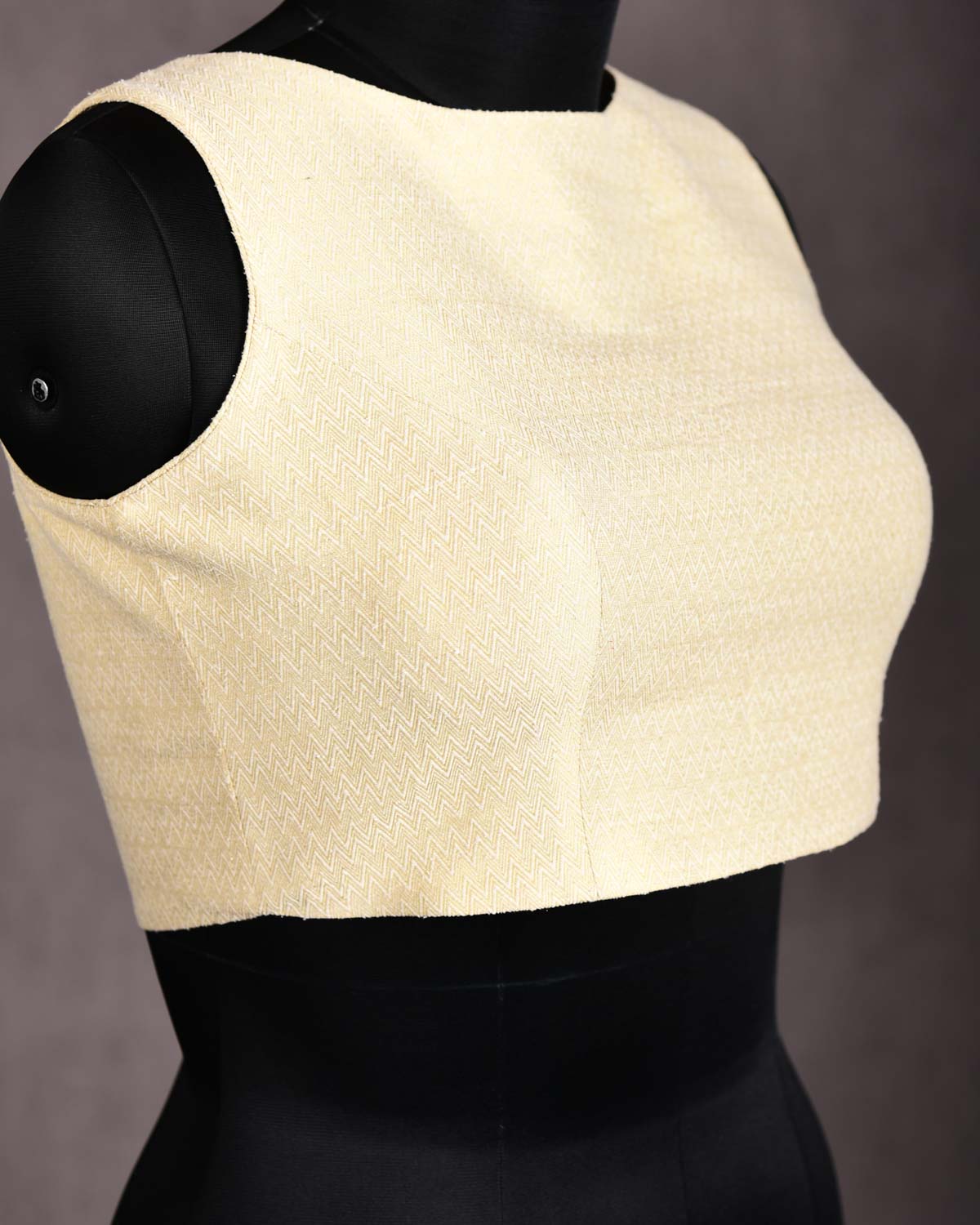 Beige Gold Zari & Resham Chevron Brocade Princess-Cut Boat-Neck Noile Silk Sleeveless Blouse