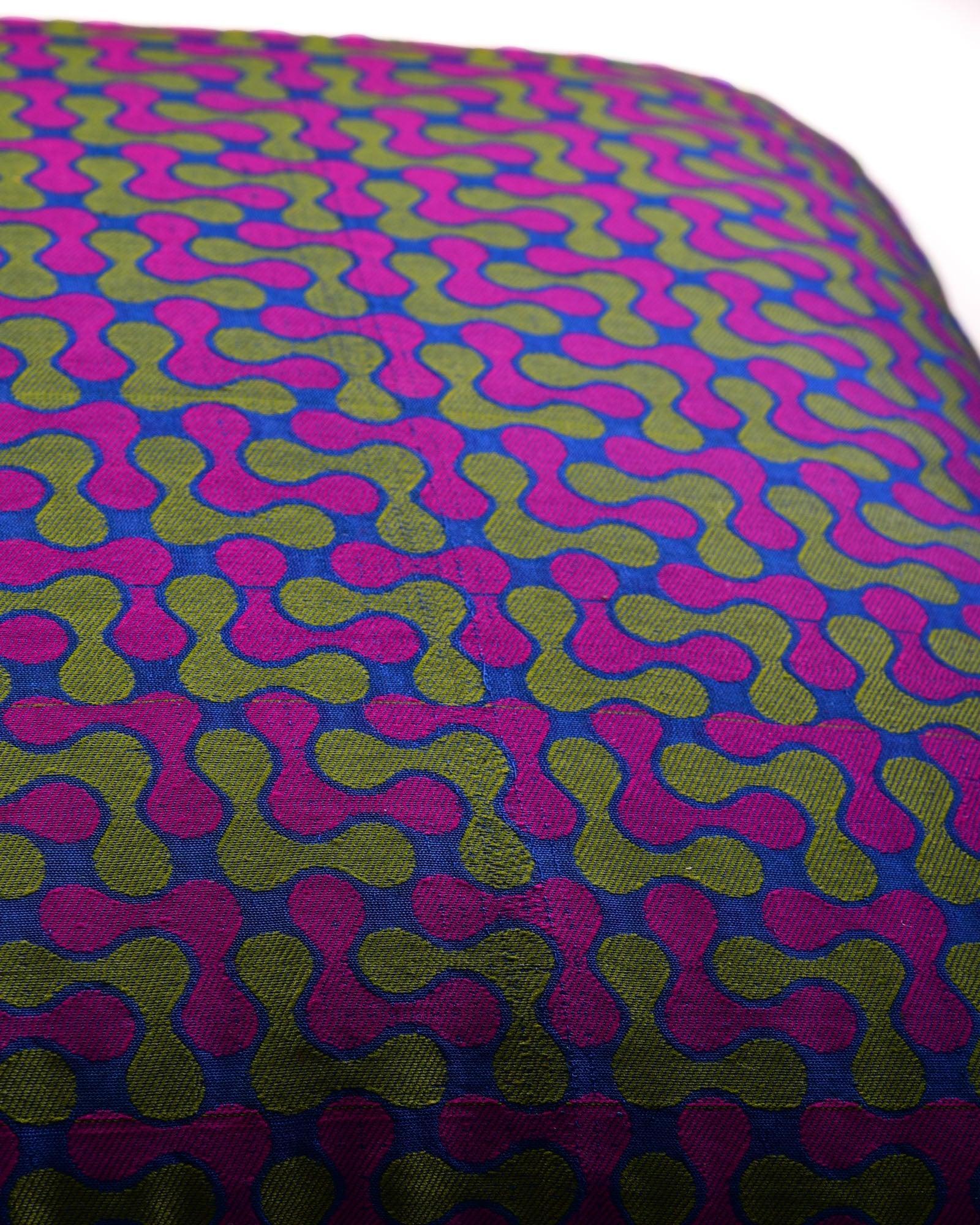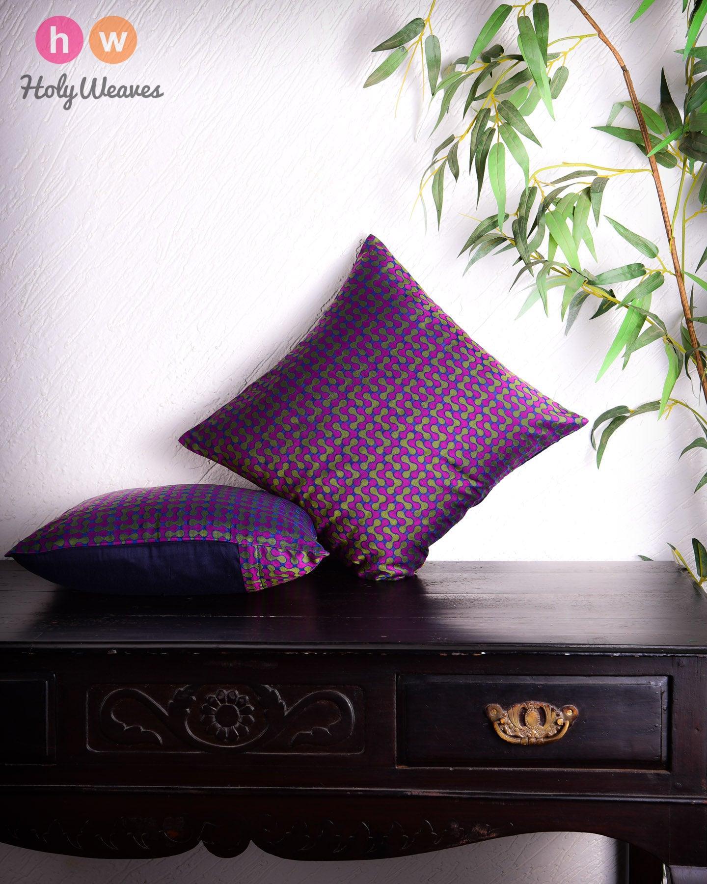 Blue Banarasi Handloom Noile Silk Cushion Cover 16"