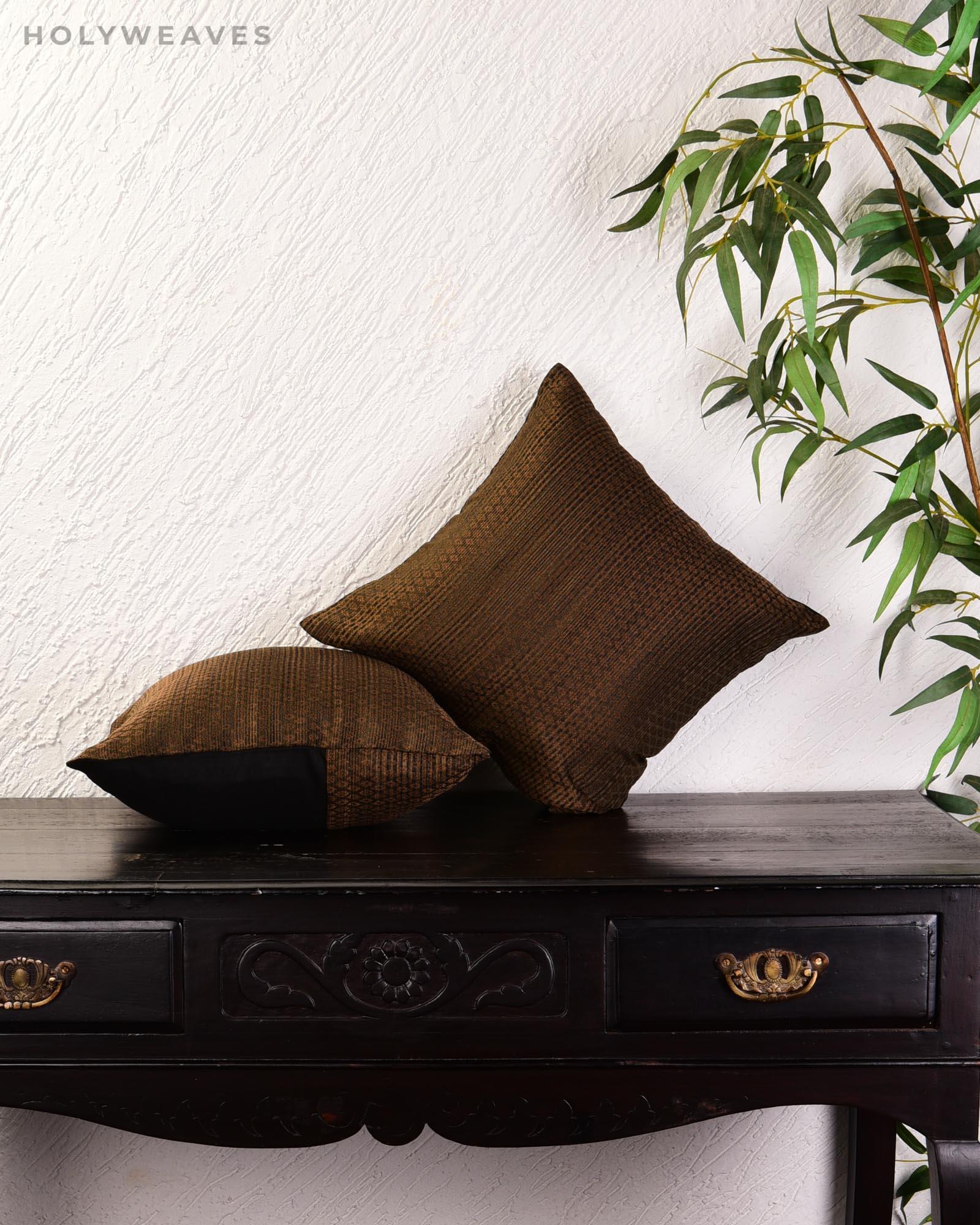 Black Banarasi Tanchoi Poly Cotton Cushion Cover 16"