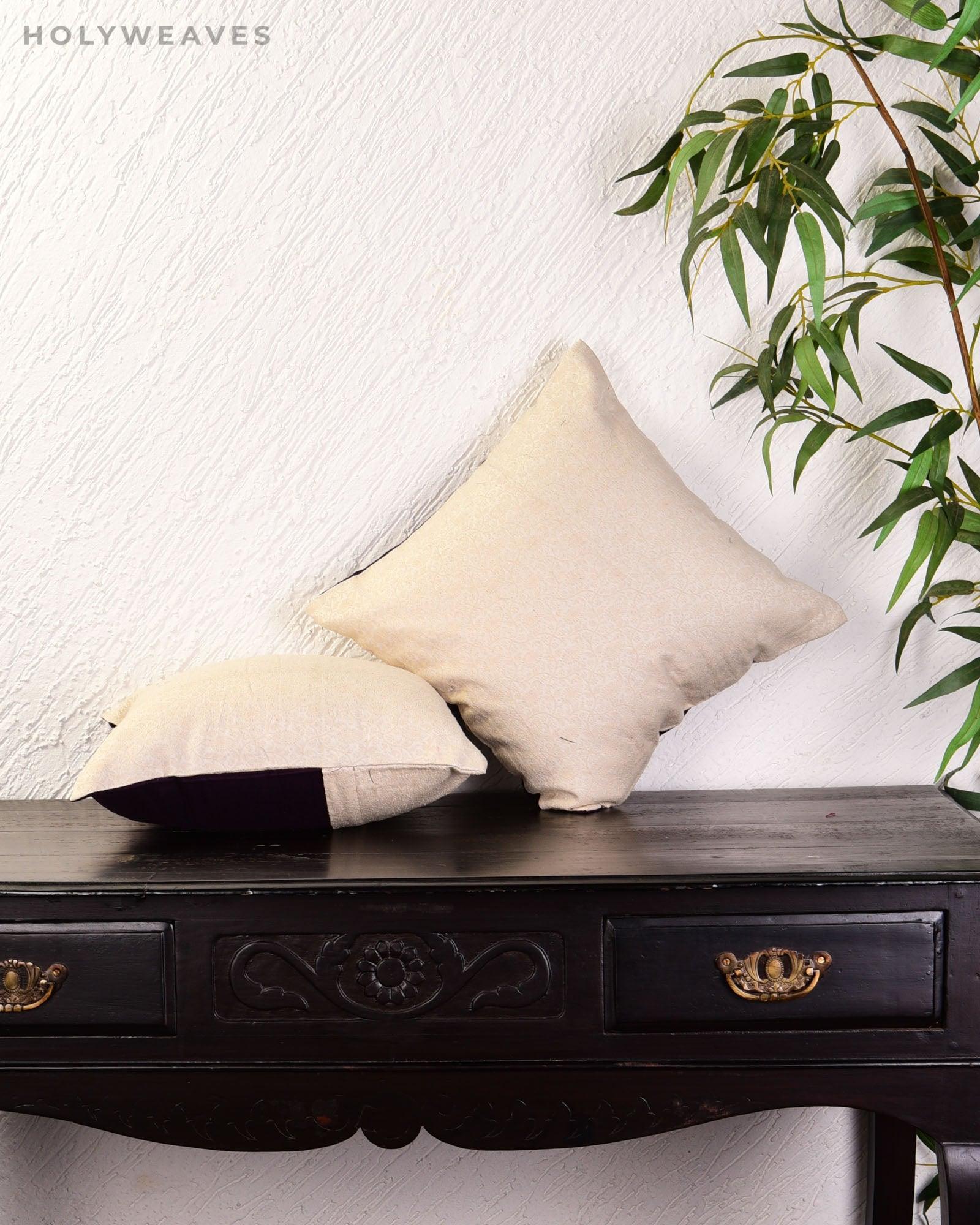 Cream Banarasi Tanchoi Silk Noile Cushion Cover 16"