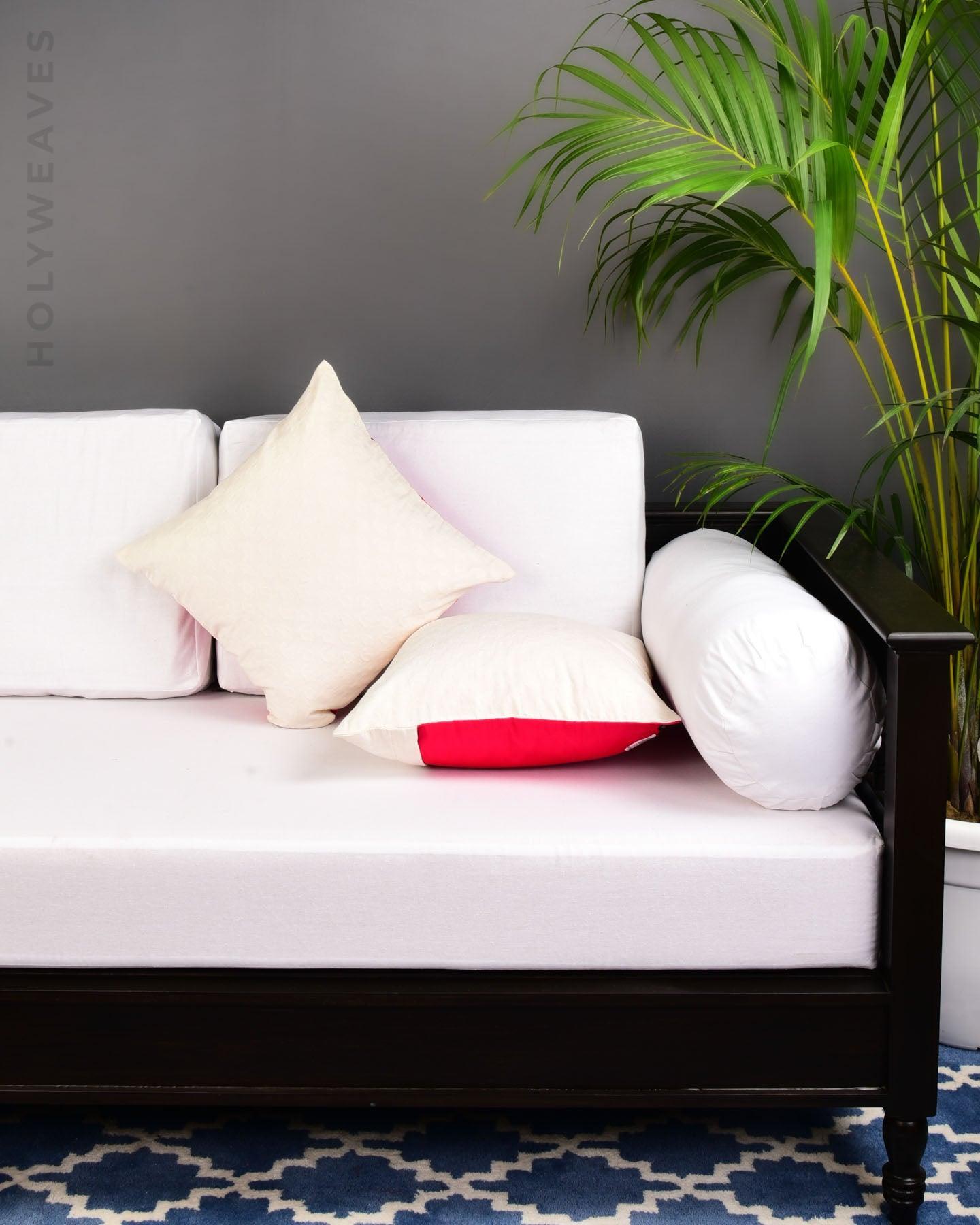 Cream Cutwork Woven Cotton Cushion Cover 16"