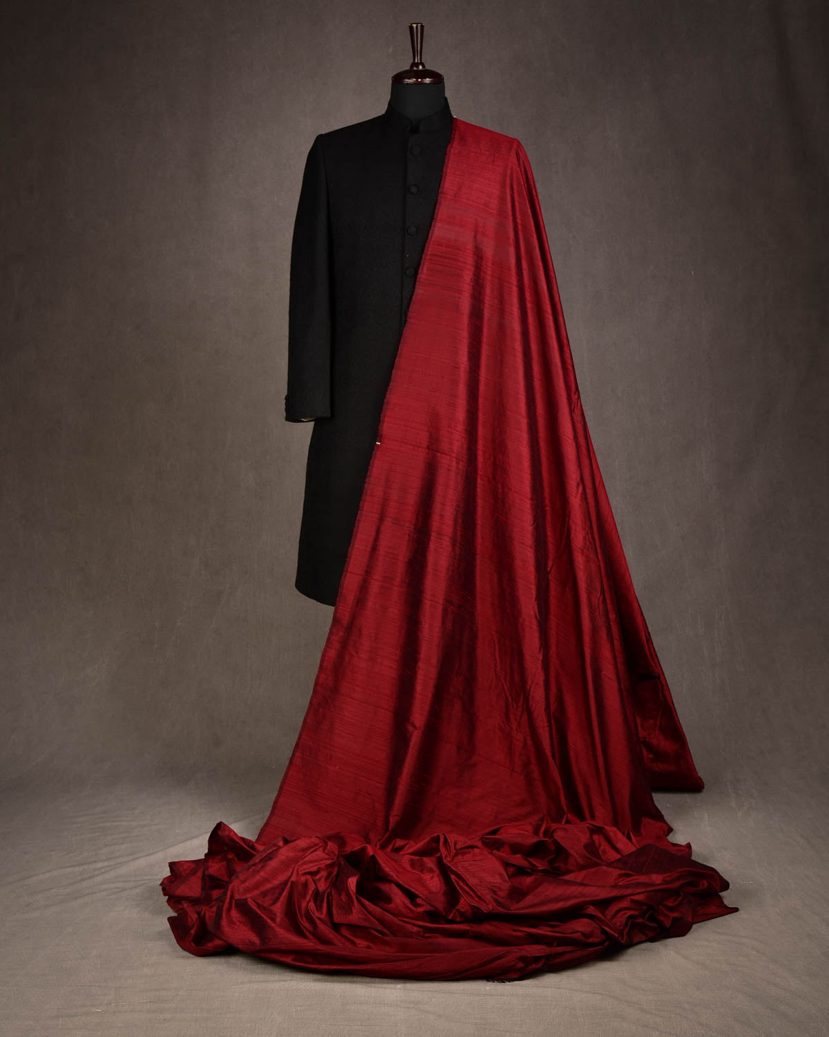Rooted and refined, this maroon handwoven raw silk fabric carries a deep, mellow richness that feels timeless. The slub texture gives it a tactile edge, catching light softly across the surface without gloss or glare. It’s the kind of fabric that elevates detail through simplicity.