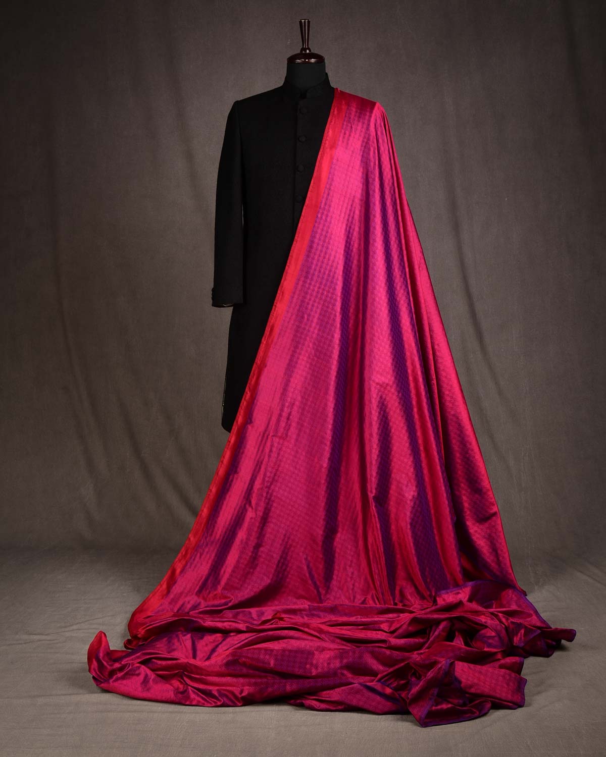 Shot Maroon Houndstooth Tanchoi Handwoven Katan Silk Banarasi Fabric