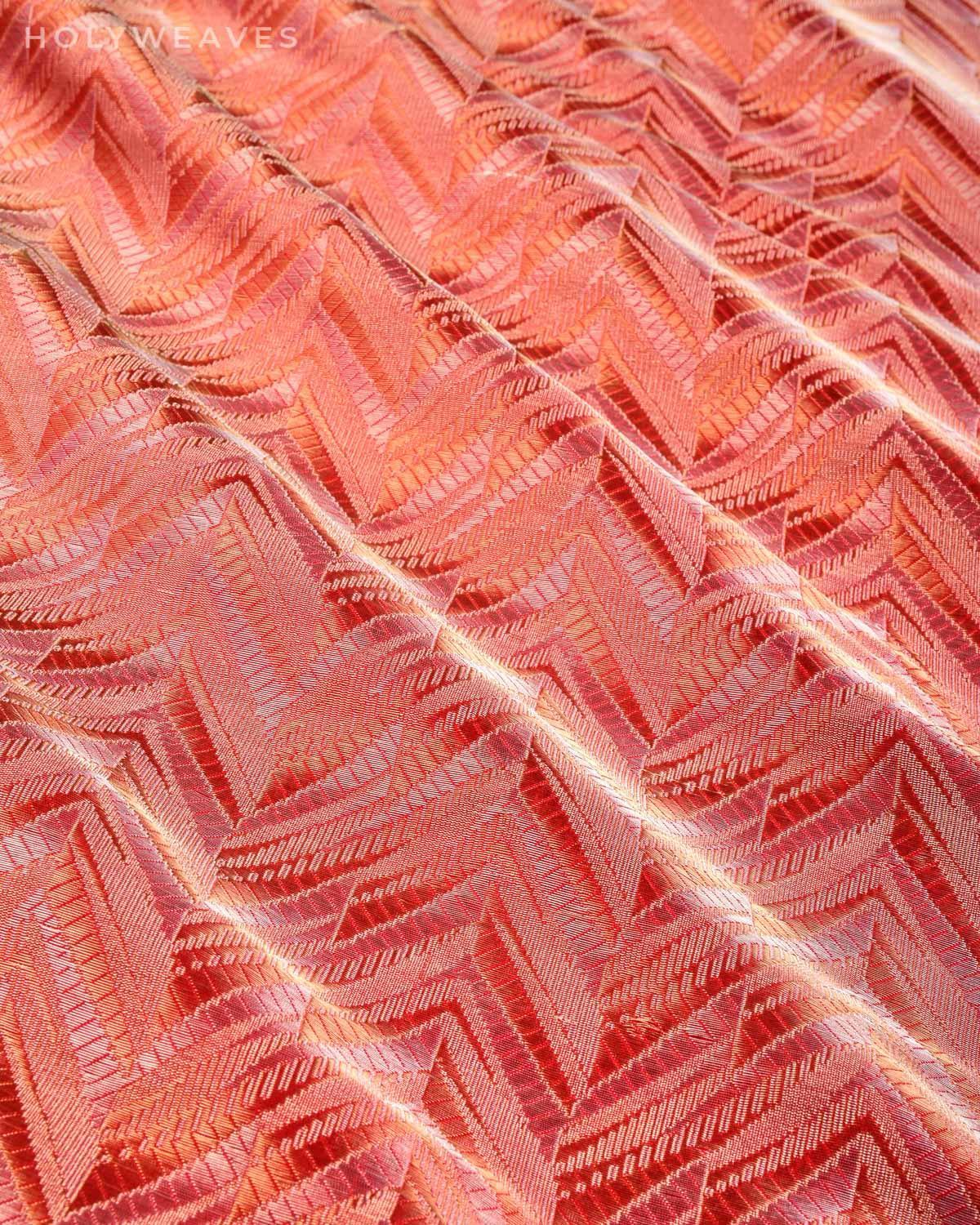Regal Red Banarasi Arrowhead Chevron Alfi Sona Rupa Brocade Handwoven Katan Silk Unisex Fabric