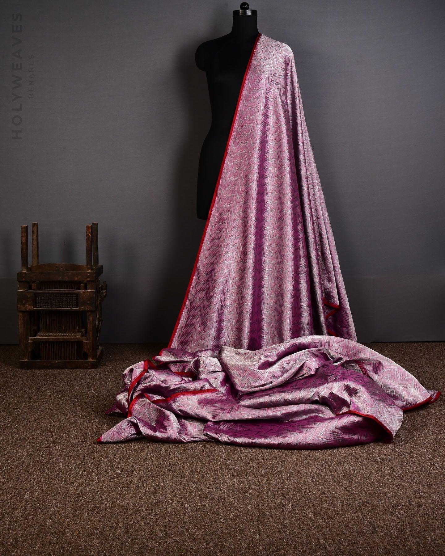 Deep Garnet Banarasi Arrowhead Chevron Alfi Gold Zari and Resham Chevron Brocade Handwoven Katan Silk Fabric