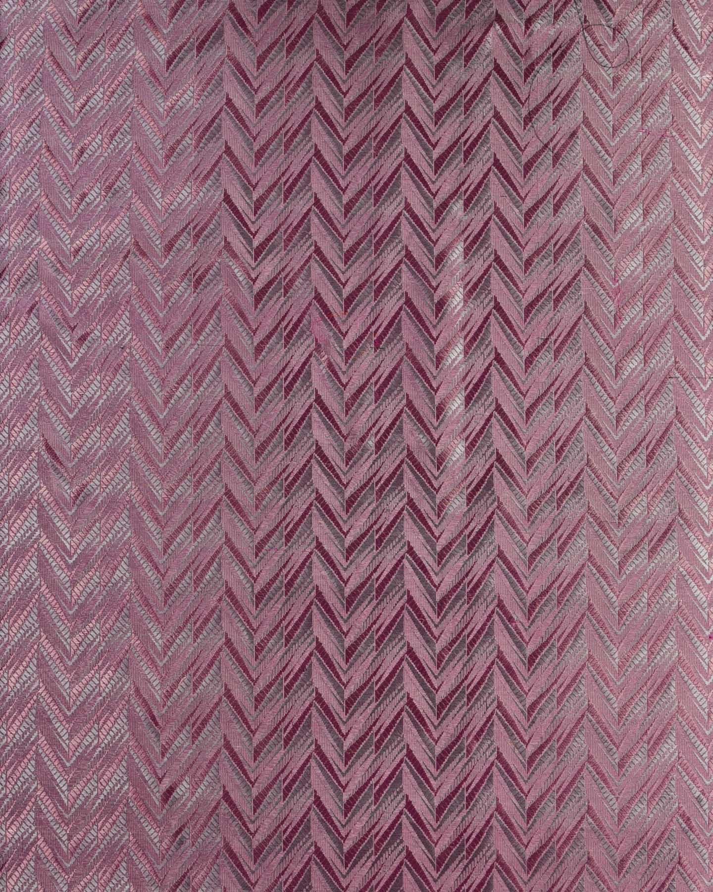 A luxurious pure silk handloom fabric with gold and silver premium metallic zari weave in a stylised herring-bone pattern. Just one look makes one fall in love with the richness of the weave, only possible on a handloom.