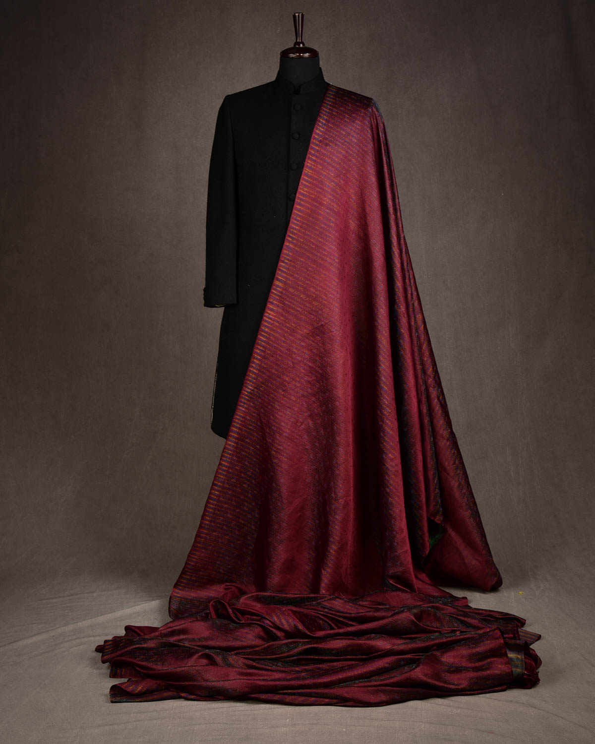 Metallic Mahogany Tehri Paisley Jamawar Handwoven Katan Silk Banarasi Fabric