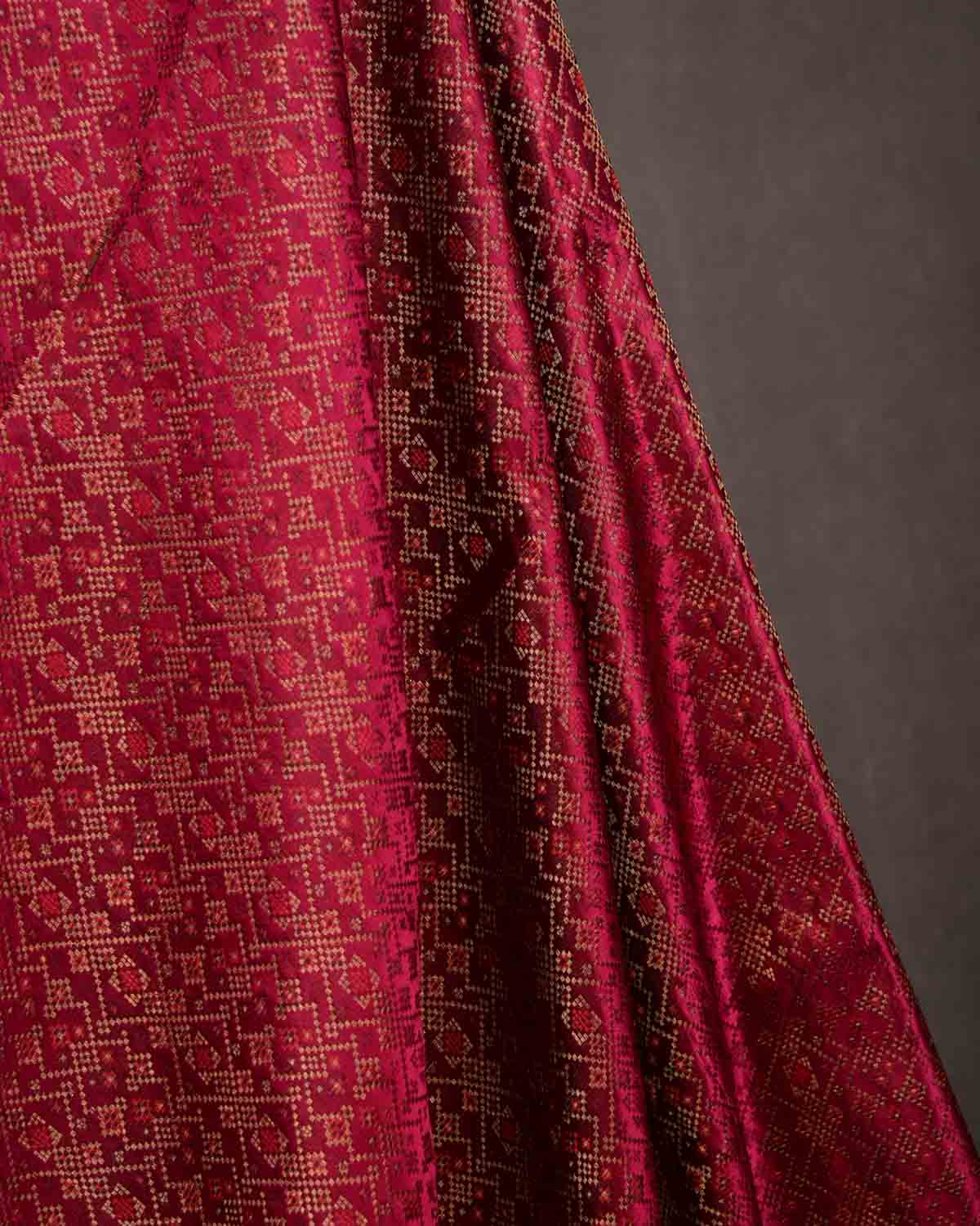 Maroon Luxury Patola Satin Tanchoi Jamawar Brocade Handwoven Katan Silk Banarasi Fabric