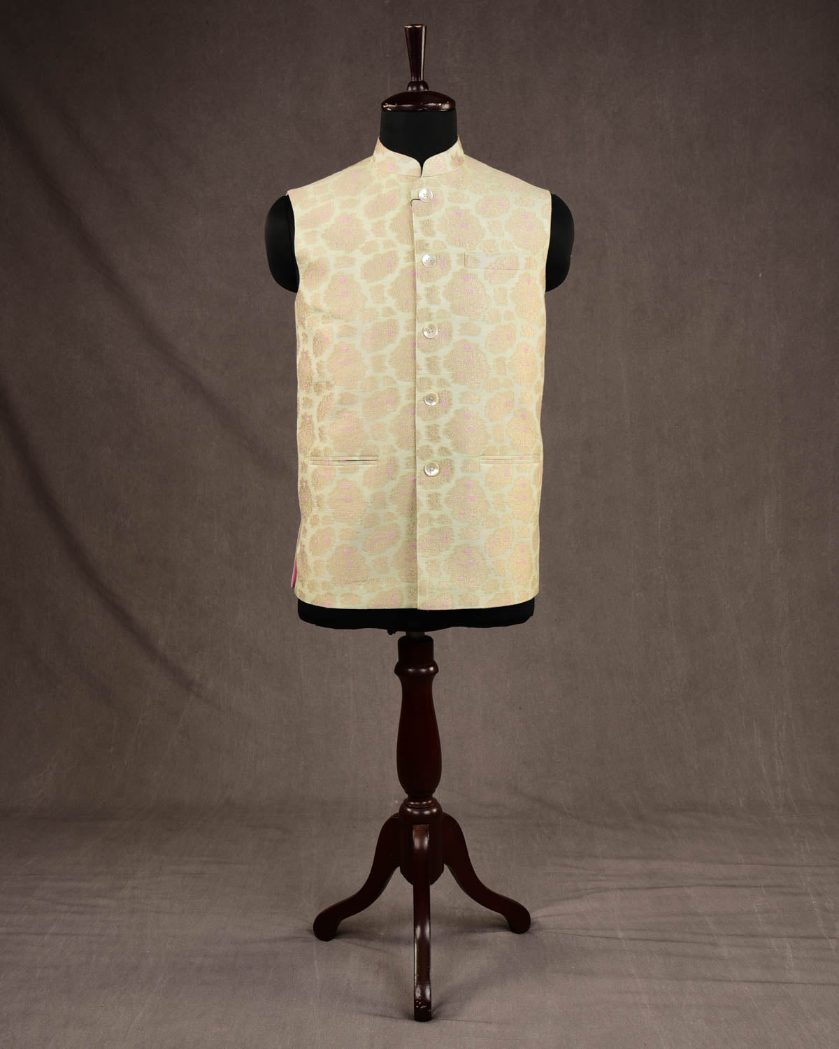 Honeydew Green Gold Zari & Pink Resham Brocade Handwoven Cotton Silk Mens Modi Jacket